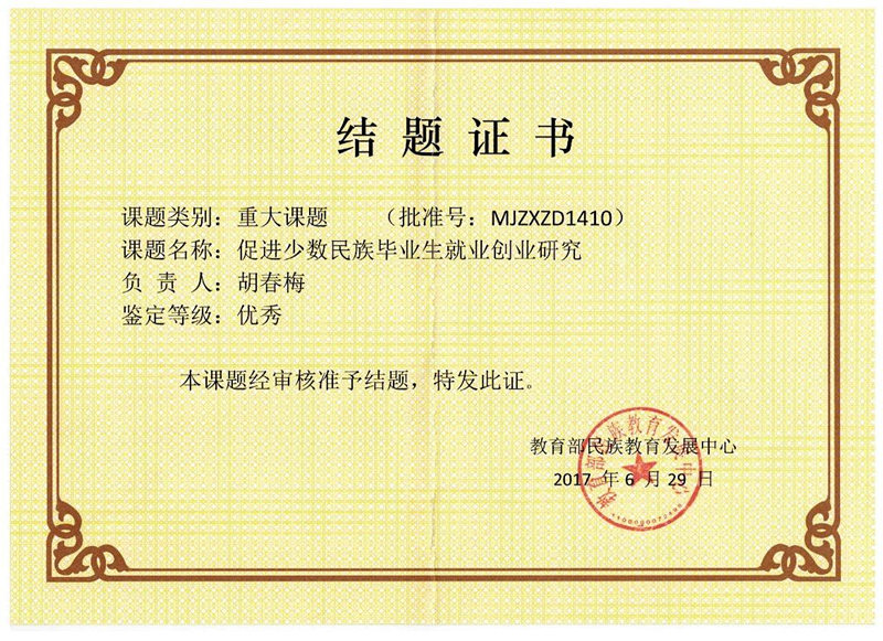 日前,从教育部民族教育发展中心传来喜讯,best365党委副书记胡春梅教授主持,学校有关人员参与的全国民族教育研究课题重大项目《促进少数民族毕业生就业创业研究》顺利通过教育部结题鉴定,鉴定结论为优秀。