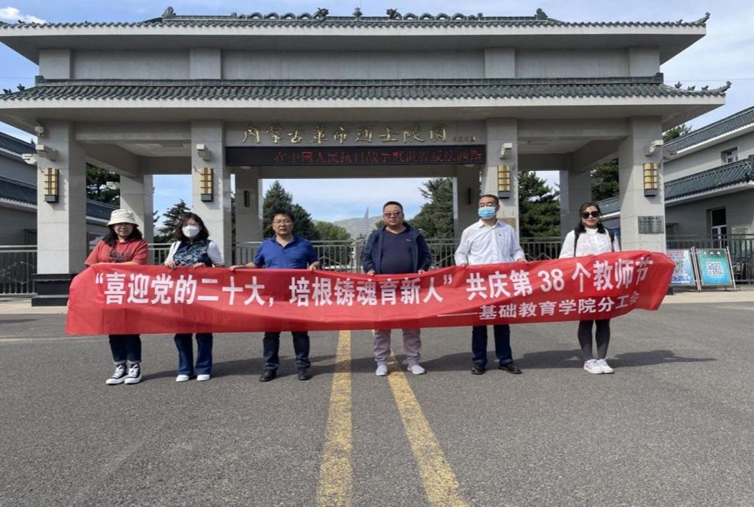 为迎接党的二十大胜利召开,进一步增强教师的责任感和使命感,在第38个教师节来临之际,基础教育学院分工会于9月9日下午开展了“喜迎党的二十大,培根铸魂育新人”为主题的教师节活动,组织教职工参观了内蒙古革命烈士陵园。