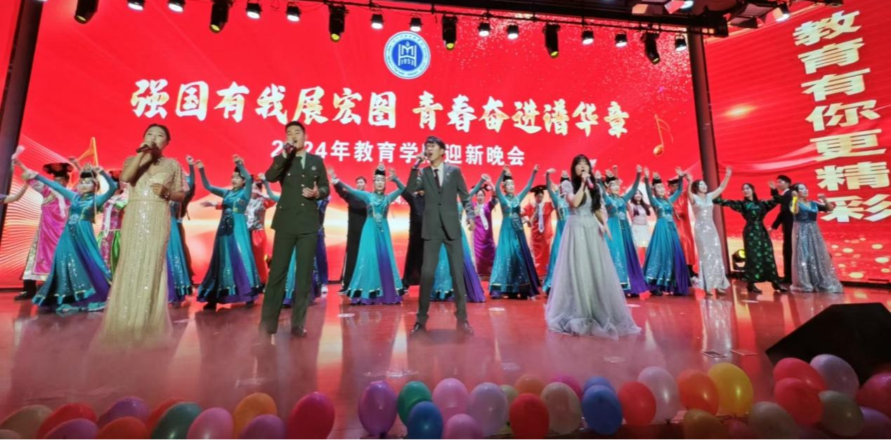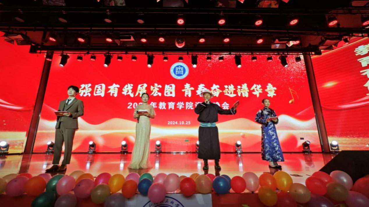 教育学院为迎接 2024 级新生,于 10 月 25 日晚 7 点在北苑图书馆二楼隆重举行了《强国有我展宏图 青春奋进谱华章》主题迎新晚会。此次晚会不仅展现了我院以生为本的教学文化和朝气蓬勃的精神风貌,也为学生们搭建了一个更广阔的自我展示平台。