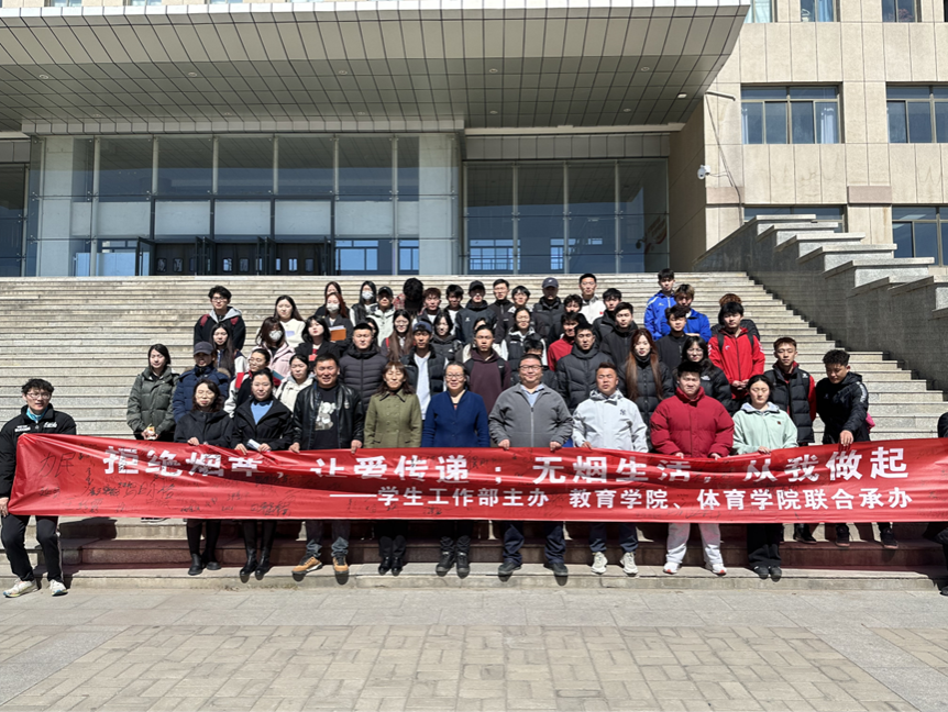 为积极响应国家控烟号召,倡导健康生活方式,营造无烟校园环境,3月20日由学生工作部主办、教育学院与体育学院联合开展了为期一个月的“拒绝烟草 让爱传递 无烟生活 从我做起”主题禁烟活动。此次活动旨在通过宣传教育与实践行动相结合的方式,增强师生对烟草危害的认识,倡导健康文明的生活理念,共同创建无烟校园。