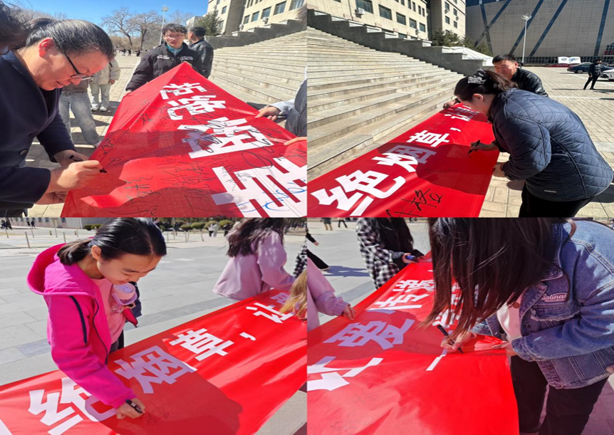 活动还特别设置了“无烟承诺签名横幅”,师生们纷纷在横幅上签名,表达对无烟生活的支持与承诺。此次“拒绝烟草 让爱传递 无烟生活 从我做起”活动不仅增强了师生的健康意识,也为创建无烟校园奠定了良好的基础。教育学院与体育学院表示,未来将继续加强合作,开展更多形式多样的健康教育活动,为营造绿色、健康、文明的校园环境贡献力量。