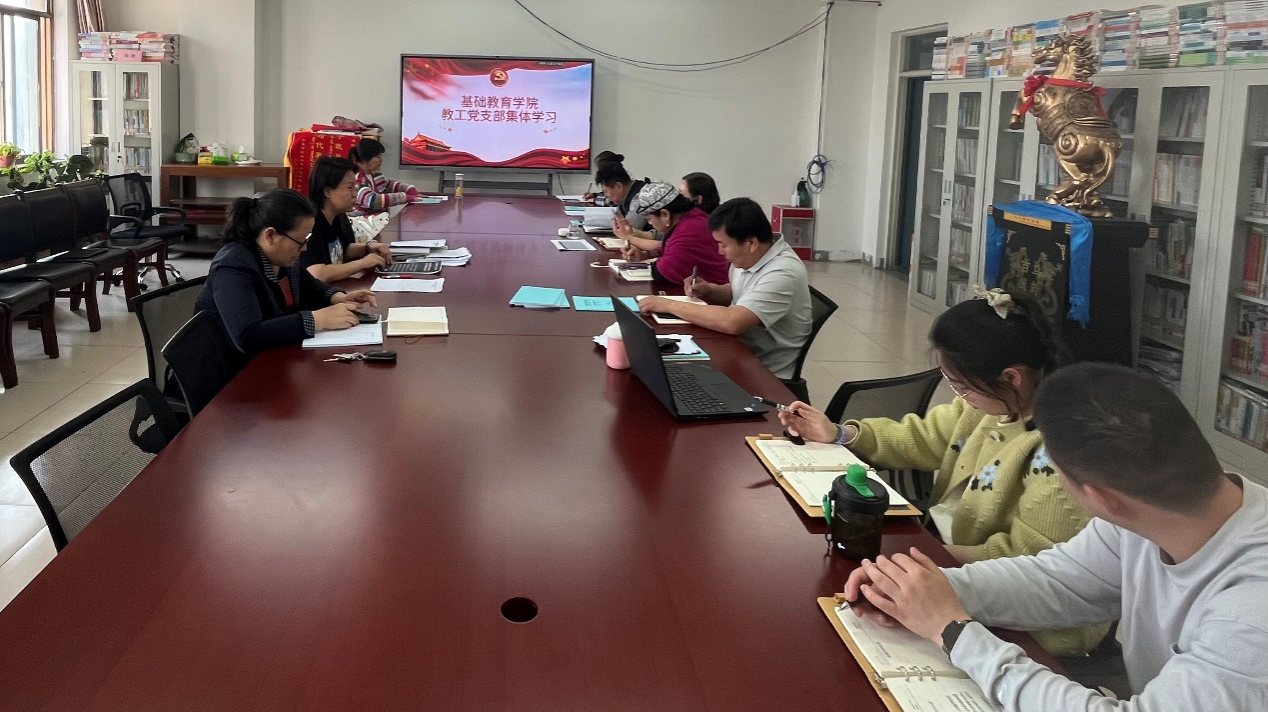 4月8日,基础教育学院教工党支部在都林楼405会议室开展集体学习活动,教工党支部负责人萨日胡主持会议,并传达2024年全国教育工作会议有关精神。
