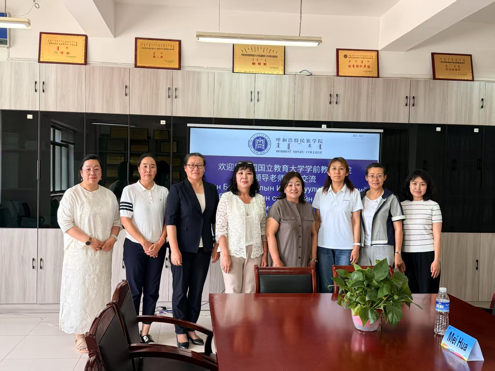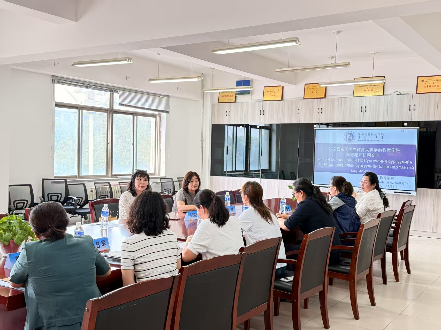 7月3日,蒙古国国立教育大学学前教育学院教务处主任图雅博士、教师乌云格日乐博士一行莅临呼best365院教育学院进行访问交流。此次访问旨在深化两校在学前教育领域的合作,促进师生互动与学术资源共享。学校对外合作与交流中心教师代表,教育学院领导班子成员、教研室主任、专业负责人、教师代表参加交流活动。