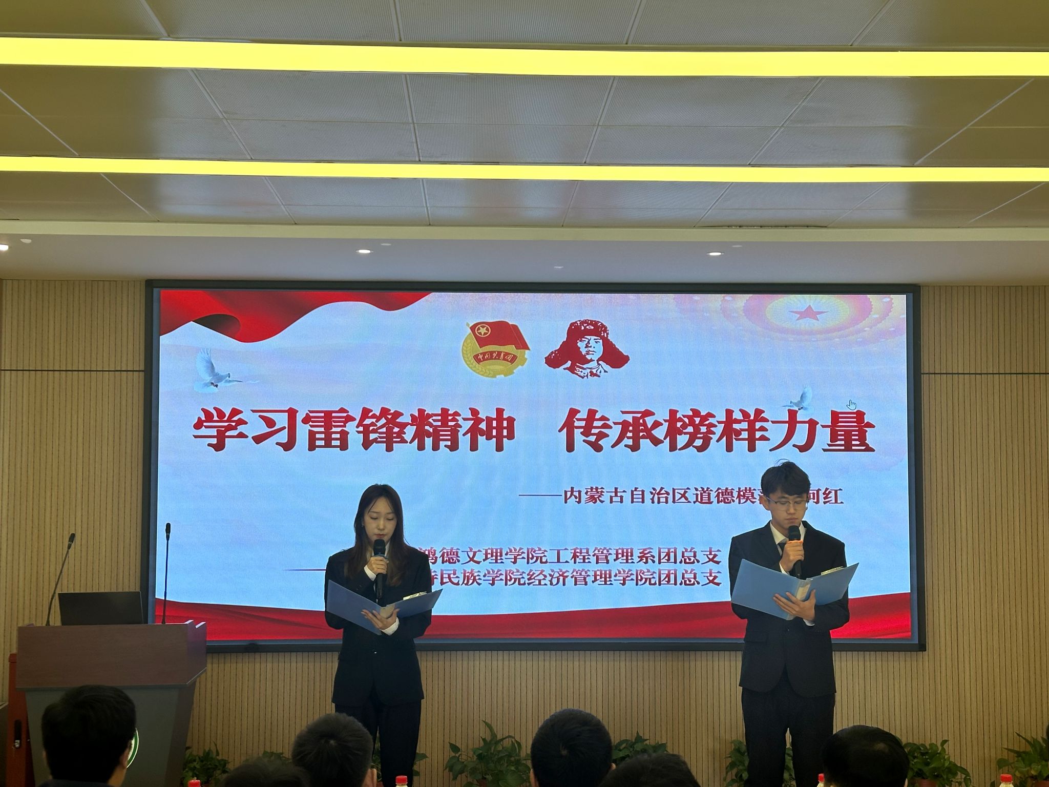 为进一步弘扬和践行雷锋精神,展现新时代雷锋的精神风貌,营造“学习雷锋无私奉献”的良好风尚,3月7日,由经济管理学院团总支和内蒙古鸿德文理学院工程管理系团总支联合举办的“学习雷锋精神,传承榜样力量”主题讲座在内蒙古鸿德文理学院北校区举行。活动特邀自治区第八届道德模范获得者何红做专题讲座。经济管理学院华国庆老师带队参加活动。