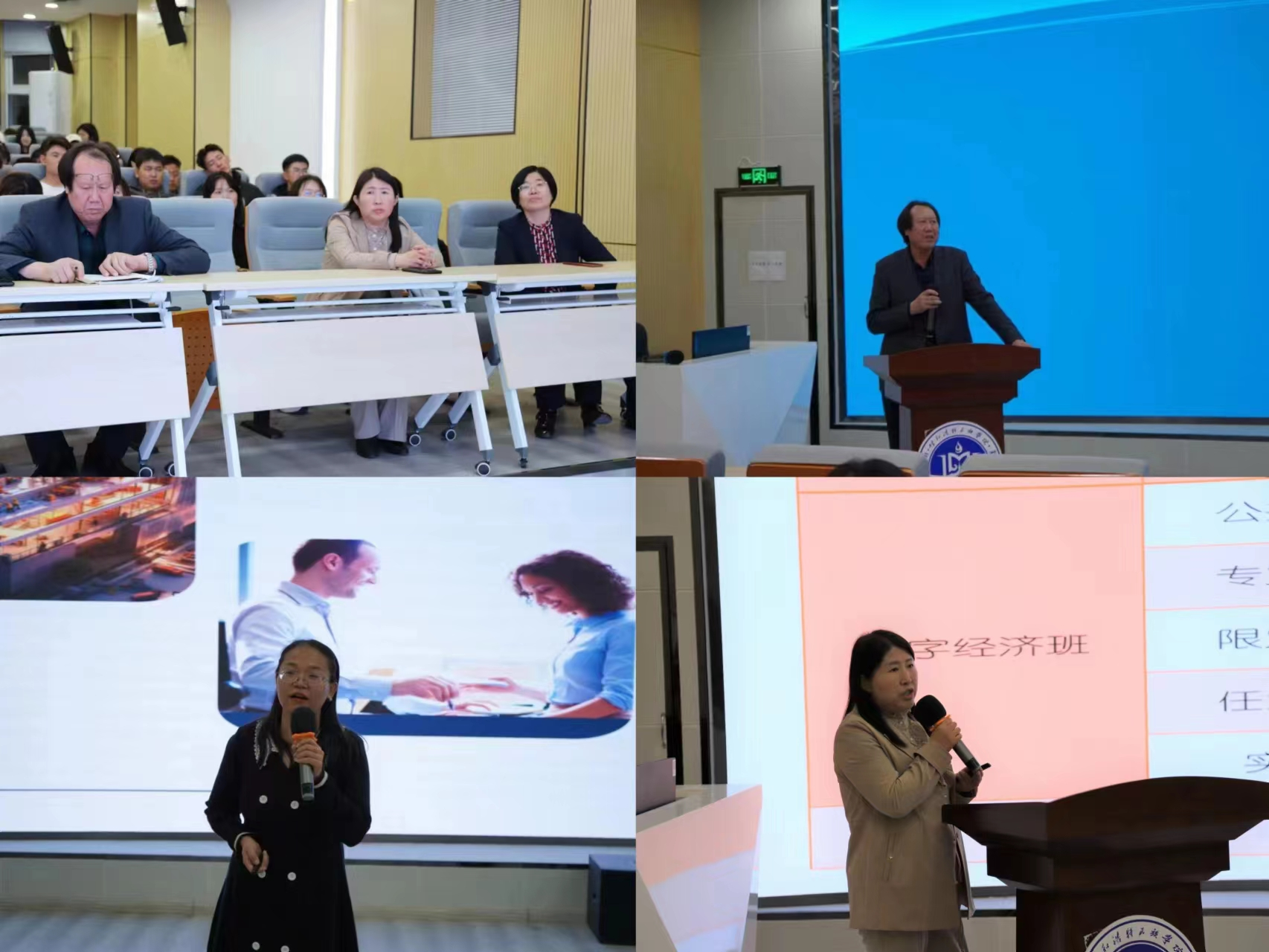 2023年10月16日晚19时,经济管理学院在思想政治课实践教育基地举办了2023级新生入学教育讲座,讲座由学院院长包诺敏主持,各专业教研室主任级2023级全体新生参加讲座。