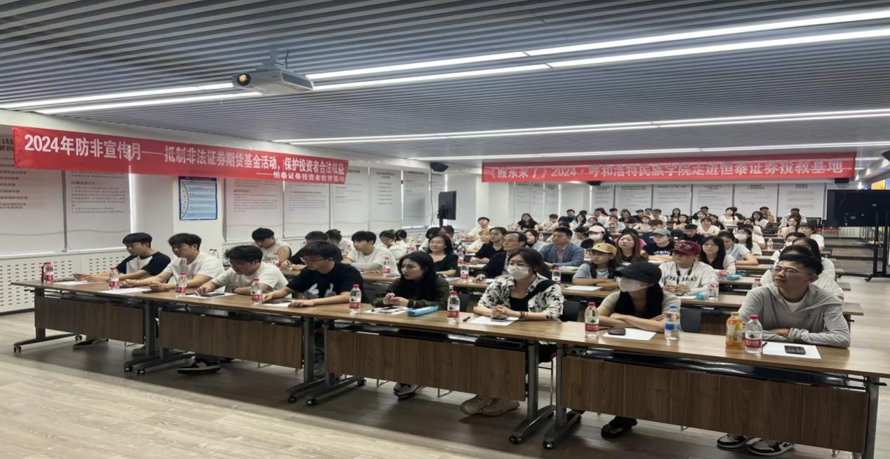此次实践教学活动分为两部分内容,第一部分内容由恒泰证券股份有限公司培训老师给同学们讲授证券投资活动相关的专业知识,参观恒泰证券投资者教育基地,参观过程中由机器人为同学们详细的介绍了恒泰证券投资者教育基地的十个业务板块,同时,同学们和机器人进行了交流和互动。参观讲解结束后,同学们进行了实践教学的第二部分内容,聆听了一场关于《证券期货纠纷多元化解实务及典型案例》的精彩讲座。