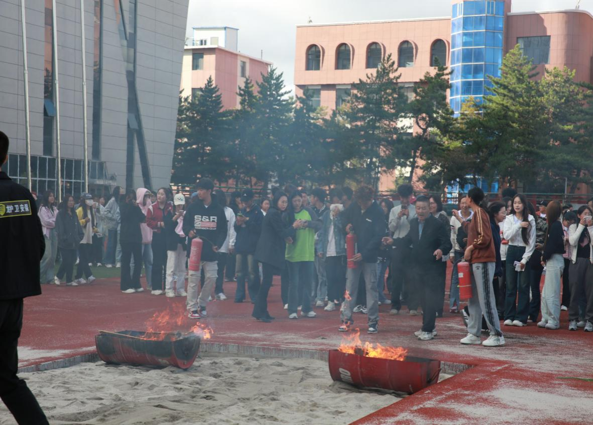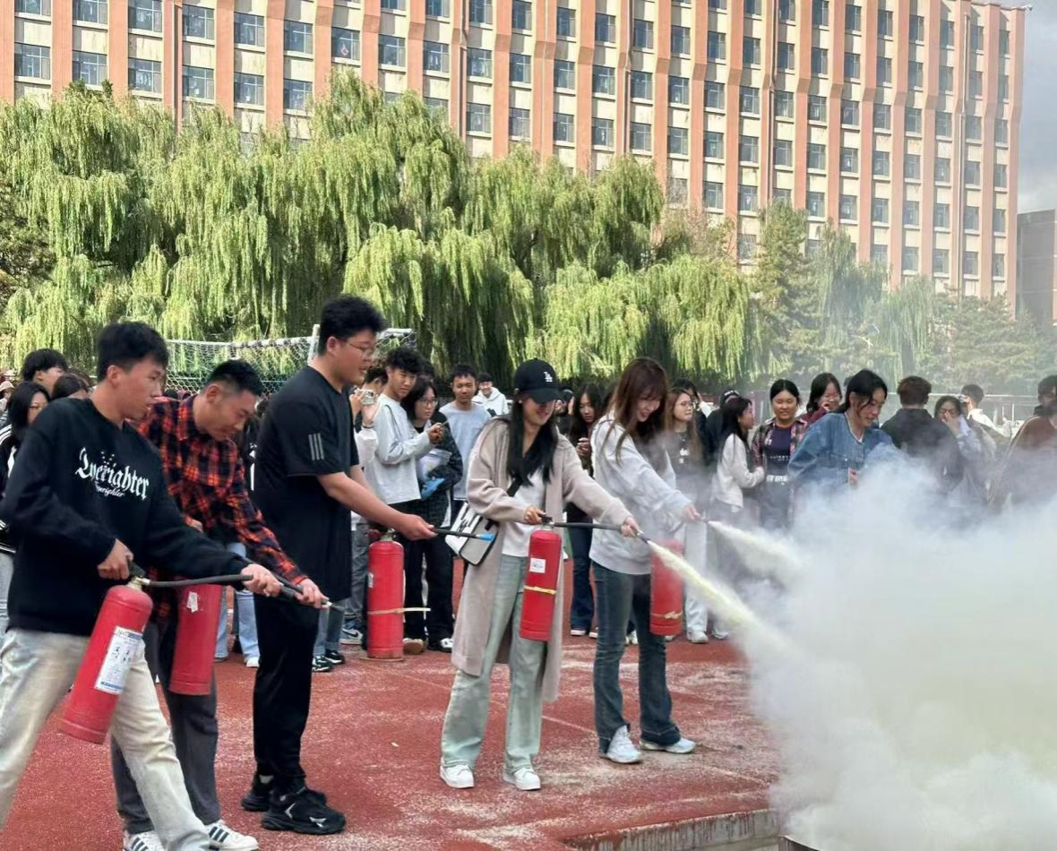 随后,在北苑操场进行了消防演练,让同学们将学习到的消防知识运用到实践中,实际操作灭火器扑灭火点等,增长了消防知识、掌握了基本的逃生技能,提高了防火自救的能力。