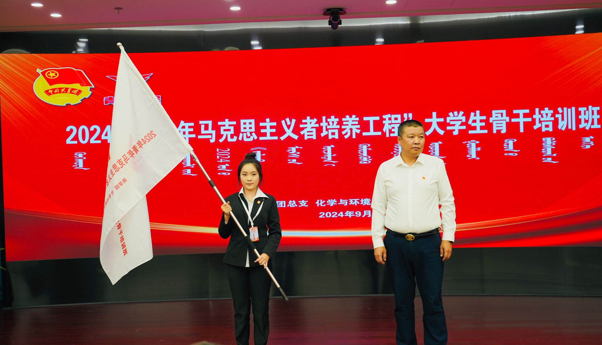 为深入学习贯彻落实党的二十届三中全会精神、习近平新时代中国特色社会主义思想、习近平总书记关于青年工作的重要思想,切实加强学生骨干队伍建设,着力培养信仰坚定、能力突出、素质优良、作风过硬的青年政治骨干,2024年9月26日,商学院与化学与环境工程学院联合开展2024年“青年马克思主义者培养工程”大学生骨干培训班,开班仪式在综合楼12楼报告厅举行,化学与环境工程学院党总支书记鄂亚彬、商学院党总支副书记李云、化学与环境工程学院党总支副书记乌玉娜、马克思主义学院副教授王玉红、团委组织部部长乌依勒斯、商学院团总支书记华国庆、化学与环境工程学院团总支书记瑙莫汗出席,各学院青马班培训学员、学生骨干和入团积极分子共120余人参加。