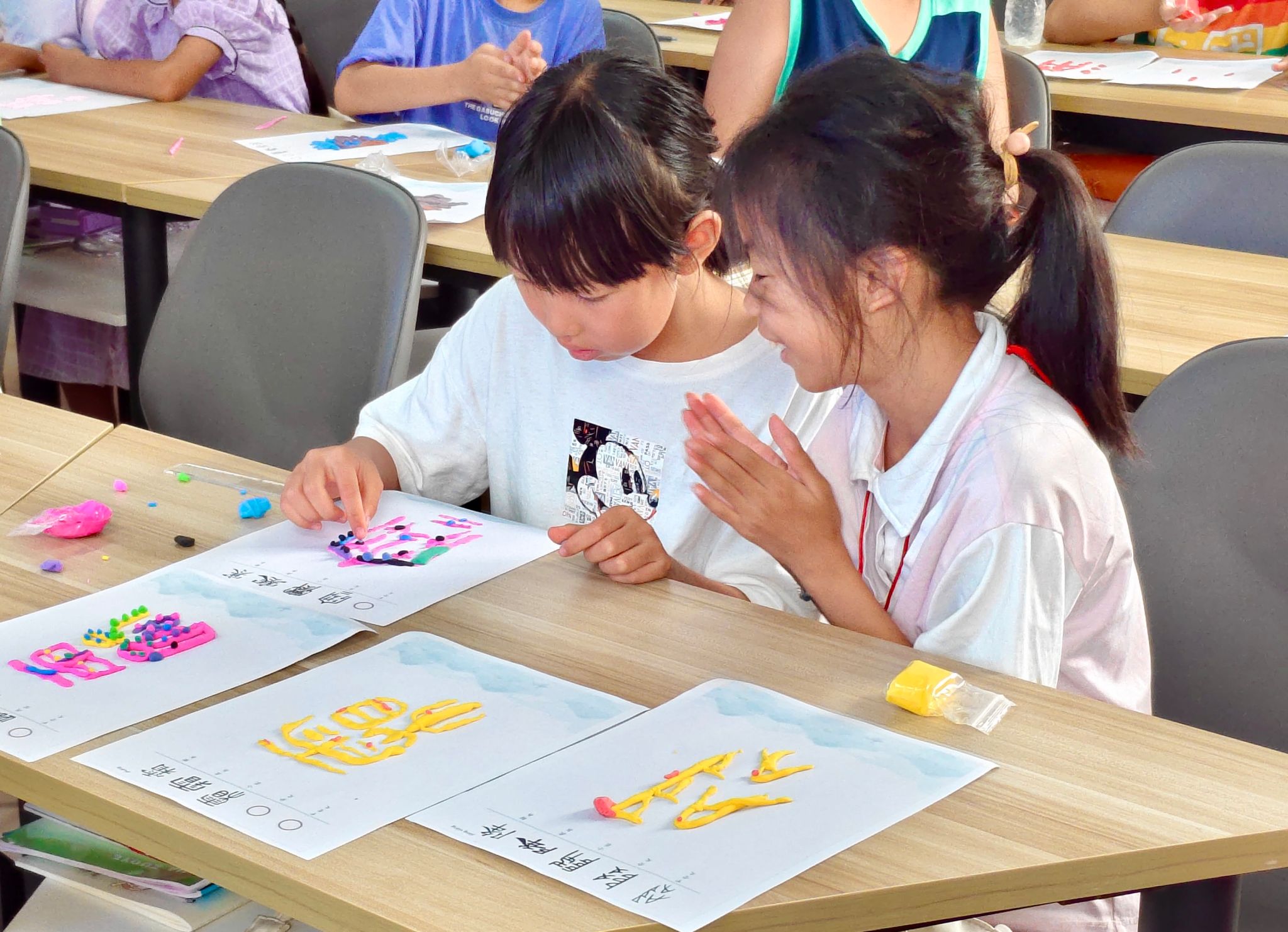 课堂上,孩子们目光专注,紧跟志愿者的讲解思路。当志愿者抛出与甲骨文相关的问题时,大家踊跃举手、积极互动,用充满求知欲的眼神,展现对古老文字的浓厚兴趣。在书写实践环节,孩子们手握笔杆,认真临摹甲骨文,在一笔一画中感受汉字起源的独特魅力,沉浸式体验传统文化的深厚底蕴。
