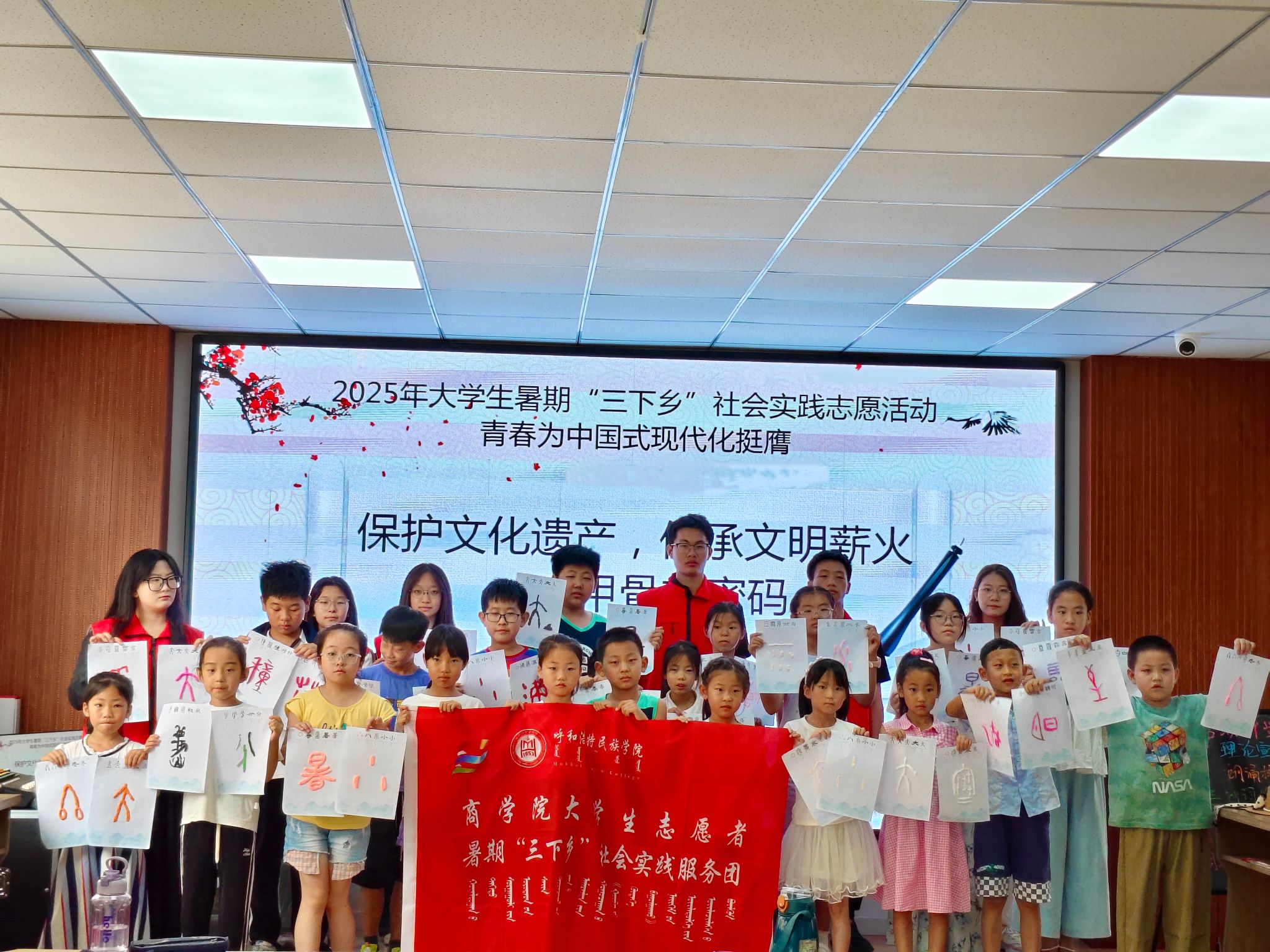 为弘扬优秀传统文化,增强青少年对文化遗产的认知与保护意识,7月30日,商学院“筑梦北疆红色之旅”志愿服务队联合敖汉青年志愿者服务队在秀水社区开展“保护文化遗产 传承文明薪火”主题支教活动,为孩子们开启一场探寻古老甲骨文奥秘的奇妙之旅。
