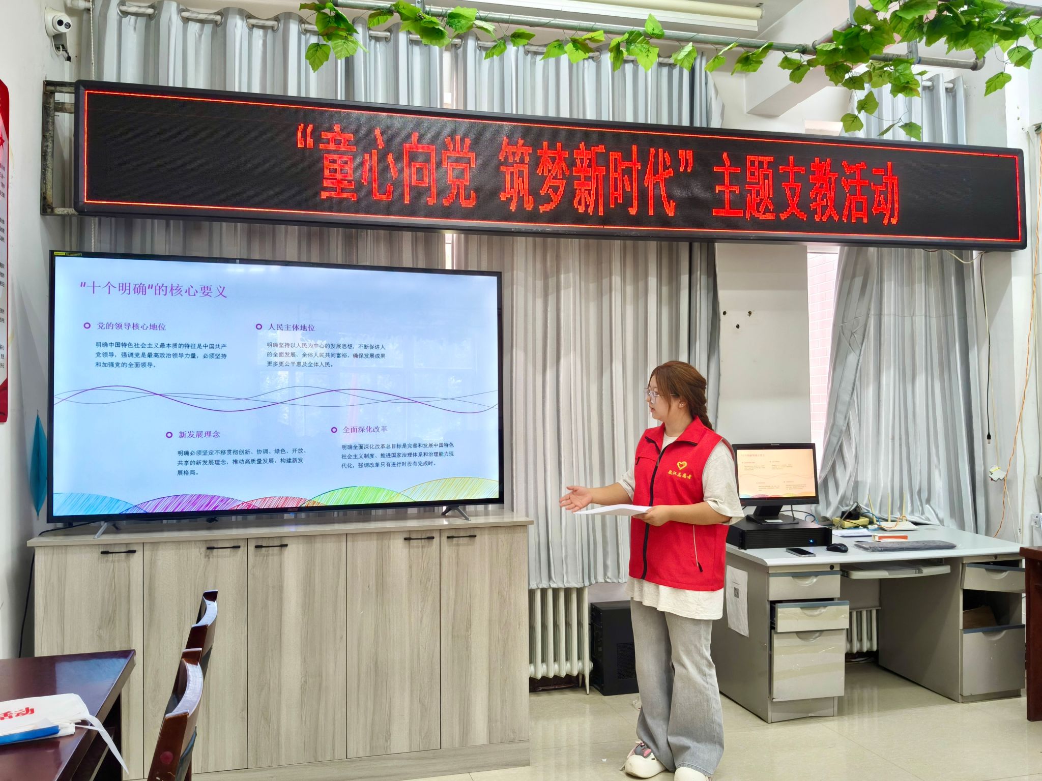 活动伊始,青年志愿者以“十个明确”核心要义为切入点,运用通俗易懂的语言,通过生动形象的案例,向孩子们阐释党的理论知识,引导他们理解党在国家发展中的关键作用,明白人民当家作主的深刻内涵,在青少年心中播撒信仰的种子,让红色基因、革命薪火代代传承 。