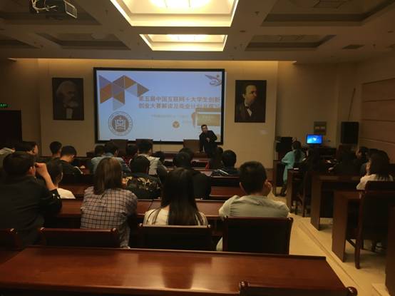 讲座上,宋老师首先借自己的创业经历和一些真实的创业故事向我们阐述了国家创新驱动发展战略,并回顾与展望了“互联网+”大学生创新创业大赛的过去以及未来发展。随后对其进行了专业的动态分析,阐述了第五届大赛“五个更”的含义。引导同学们更加深入的了解本次大赛各个方面的进程与背景,为同学们解疑答惑,使同学们更加了解本次大赛。最后,宋老师就如何撰写商业计划书等进行了专业的讲解,并对同学们寄语每一个有创业梦想的同学能在创新创业大赛上走出更远的路。
