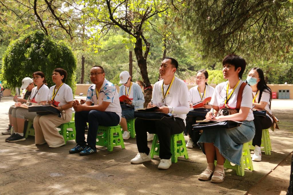 在延安革命纪念馆楼前,哈斯教授领誓,带领全体党员重温入党誓词。重温入党誓词,是每名共产党员对初心与使命的回望;学习革命历史,是每个中国人对智慧和力量的汲取。全体党员在先辈的革命精神感召下,通过宣誓更加坚定了共产主义信念,时刻提醒自己不忘对党作出的庄严承诺。