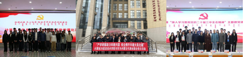 学院坚持“党建+业务”深度融合,主动对接内蒙古“五大任务”和电子信息产业需求,引入华为、中软等头部企业优质资源,打造“沃土计划”“精英班”等特色项目,7个案例入选校级“真实项目案例库”,4个案例入选校级“课程思政”优秀教学案例。党建引领推动教育教学、学术研究、人才培养、创新创业等工作,党员教师微党课入选自治区党委组织部微党课推广案例,师生主要参与开发的全国最大蒙古语听书平台“蓝色草原听书平台”入选“2020年度全国新闻出版深度融合创新案例”。连续4年组织开展“微党课比赛”,教工支部先后获评校级“先进党支部”、“坚强堡垒支部”,2024年度总支书记抓基层党建评价等次为“好”,所在党总支获评校级先进党组织。