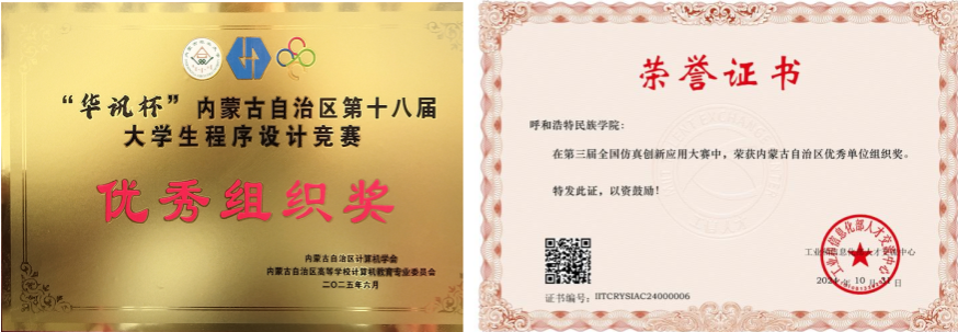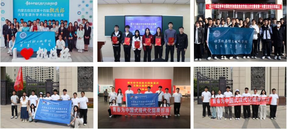 打造“学科竞赛+社团活动+社会实践”三位一体育人体系,全面提升学生综合素养与专业竞争力。依托“程序开发社团”“智维·计算机技术社团”,形成200余人核心群体,年均开展编程培训、创新创业实训等活动20余场,2022年以来承办华为ICT大赛、“蓝桥杯”等高水平赛事10次,学生累计斩获国家级、省部级奖项112项。以“实践育人”为导向,组织多样化社会实践活动,2025年暑期“三下乡”团队赴赤峰开展社区服务与红山文化研学,实现服务社会与文化认知双向赋能;推动“返家乡”实践,学生在政府、法院、科技馆等岗位历练,将专业知识融入基层服务,锤炼实操能力与社会责任感,达成价值塑造与能力提升的有机统一。