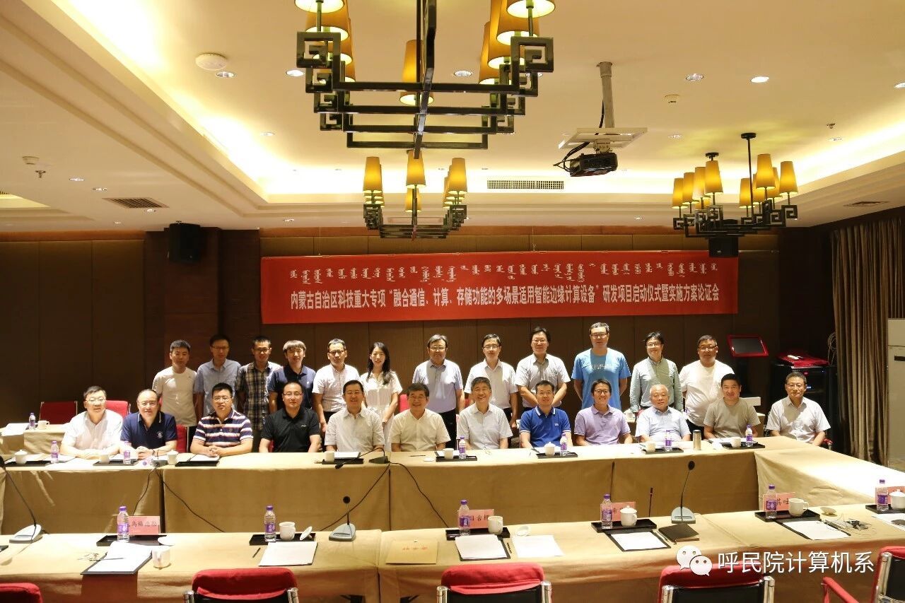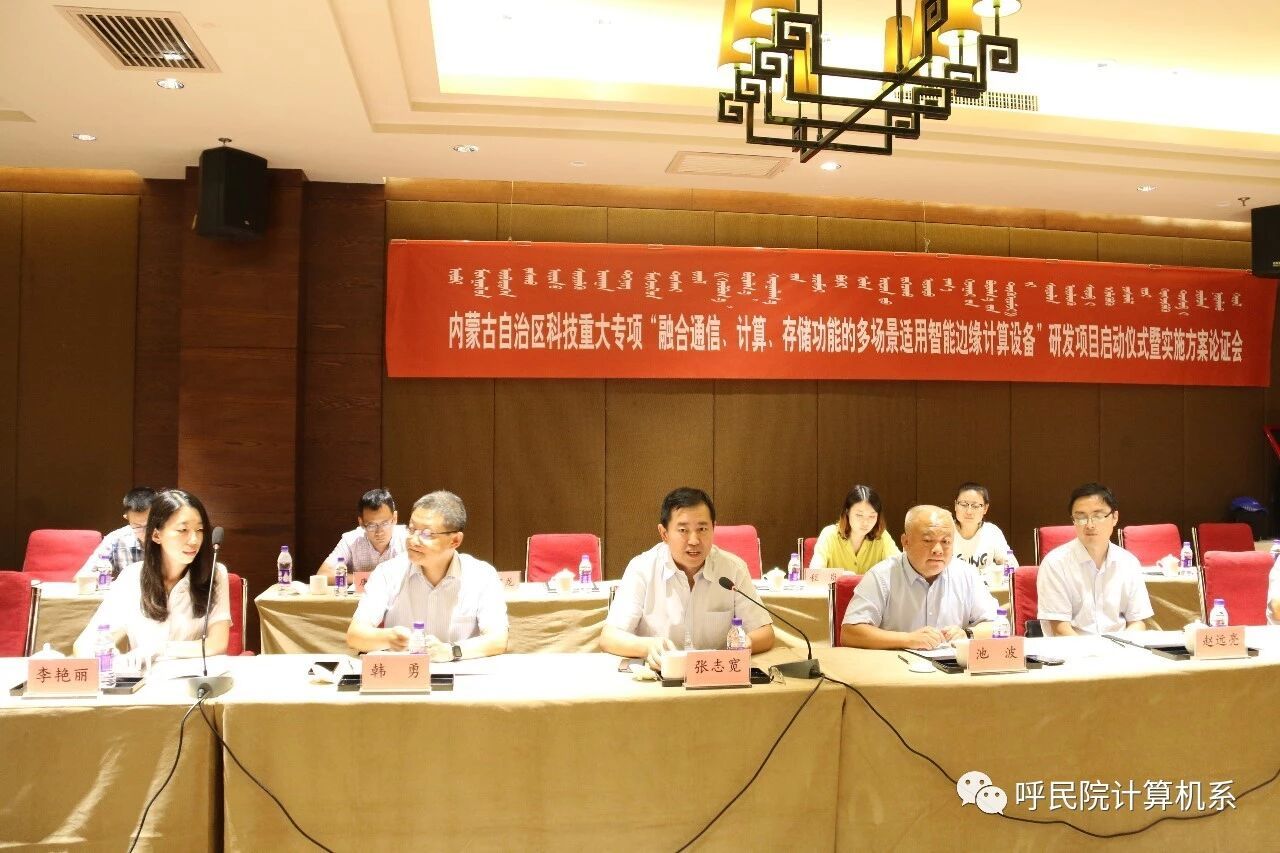 2019年7月20日,内蒙古自治区科学技术厅主持召开了由best365官网中文版登录计算机科学与信息工程学院牵头承担的2018年内蒙古自治区科技重大专项“融合通信、计算、存储功能的多场景适用智能边缘计算设备”研发项目启动仪式暨实施方案论证会。自治区科技厅张志宽副厅长、政策法规与监督处韩勇处长、高新技术处赵远亮调研员、李艳丽科员、best365官网中文版登录阿拉坦仓副校长、内蒙古甘卓尔信息技术服务有限公司和内蒙古草原音画科技有限责任公司的领导出席会议,来自国内外的相关领域专家以及项目组成员近50人参加了会议,会议由自治区科技厅高新技术处池波处长主持。