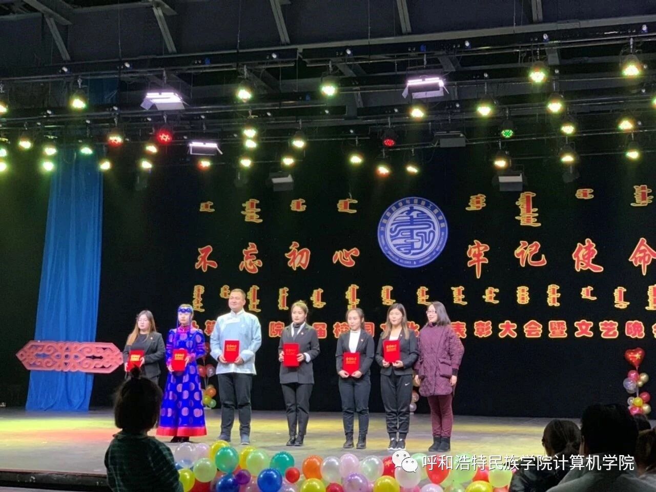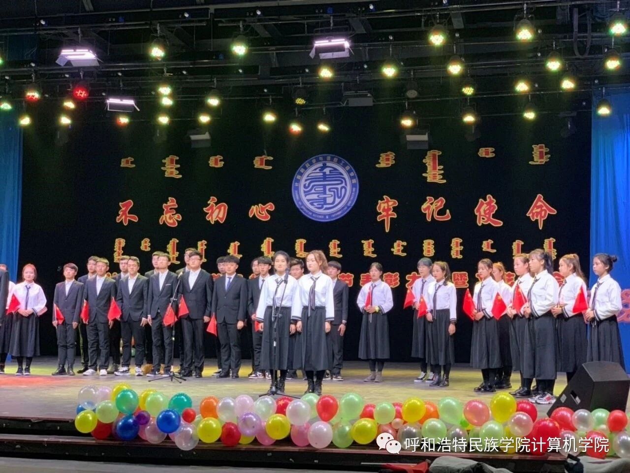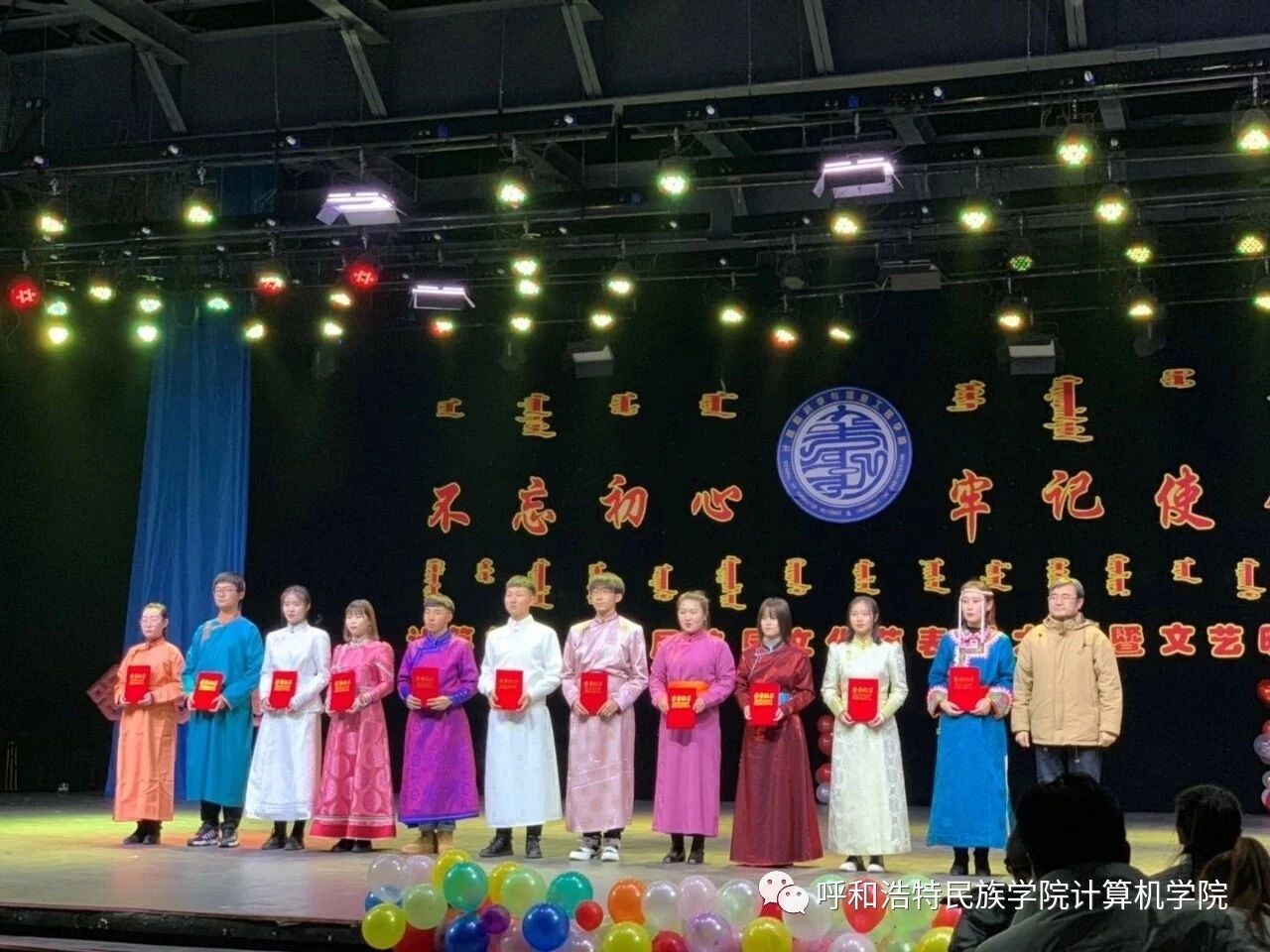 为深入贯彻习近平新时代中国特色社会主义思想,扎实推进“不忘初心,牢记使命”主题教育,促进民族团结繁荣发展,营造良好的育人环境,计算机学院于2019年10月22日—11月25日举办了为期1个月的首届“不忘初心,牢记使命”校园文化节,期间开展了党团知识竞赛、演讲、书法、绘画、棋类比赛等系列活动。12月4日,在学校演播厅隆重召开了本届校园文化节的颁奖典礼暨文艺晚会。