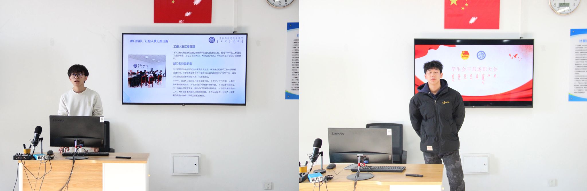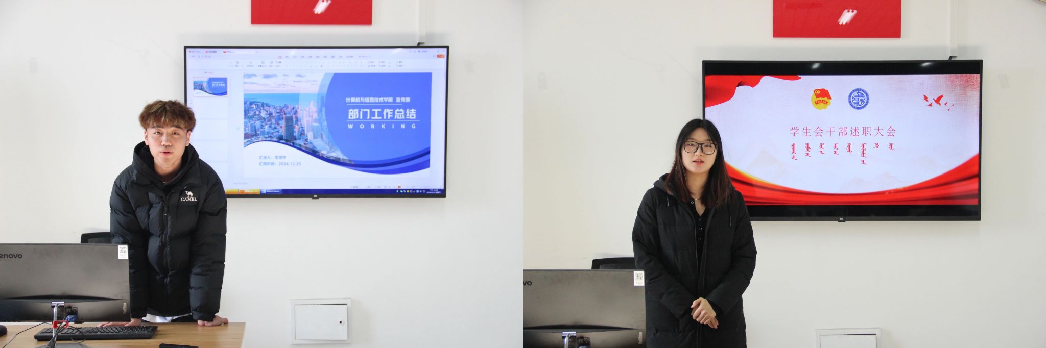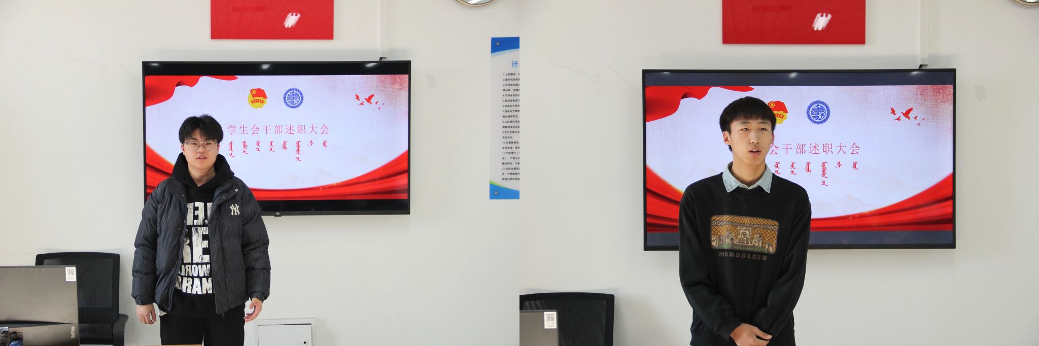 为进一步加强团总支学生会自身建设,总结本学期的工作成果,明确未来的工作目标,我院于2024年12月25日中午,在综合楼809教室,召开学生会干部述职大会。学院团总支书记包巴雅力格、辅导员云麒、学生会全体成员参会。