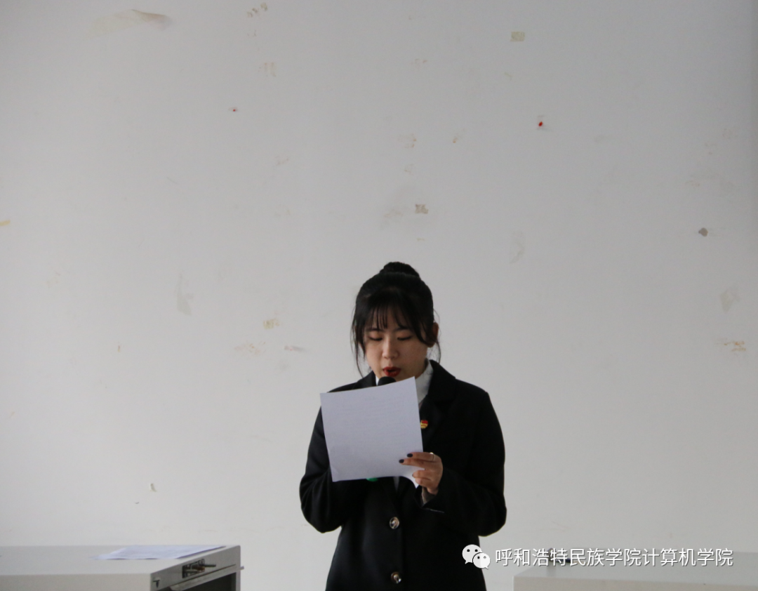会议接近尾声,院学生会主席孙国龙带领大家重温入团宣誓、院学生会张萌萌主席讲述学生会规章制度及日常工作注意事项。最后由包巴雅力格老师进行总结发言。