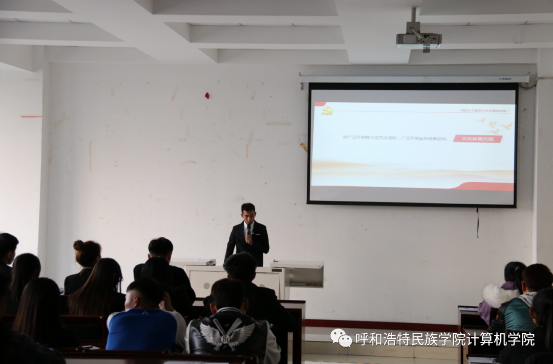 其次,院学生会主席连儒贺带领大家学习第十九届五中全会精神、紧接着由公寓管理部部长刘颖、好日新交流发言。