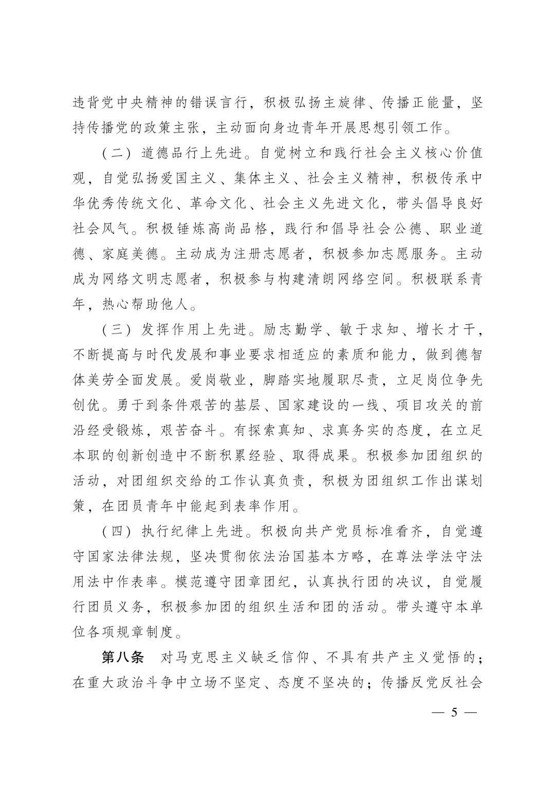 第六条 团组织向党组织推荐发展对象,原则上应当是团员中的入党积极分子,应坚持党章规定的党员基本条件,真正把团员中的先进分子推荐给党组织。