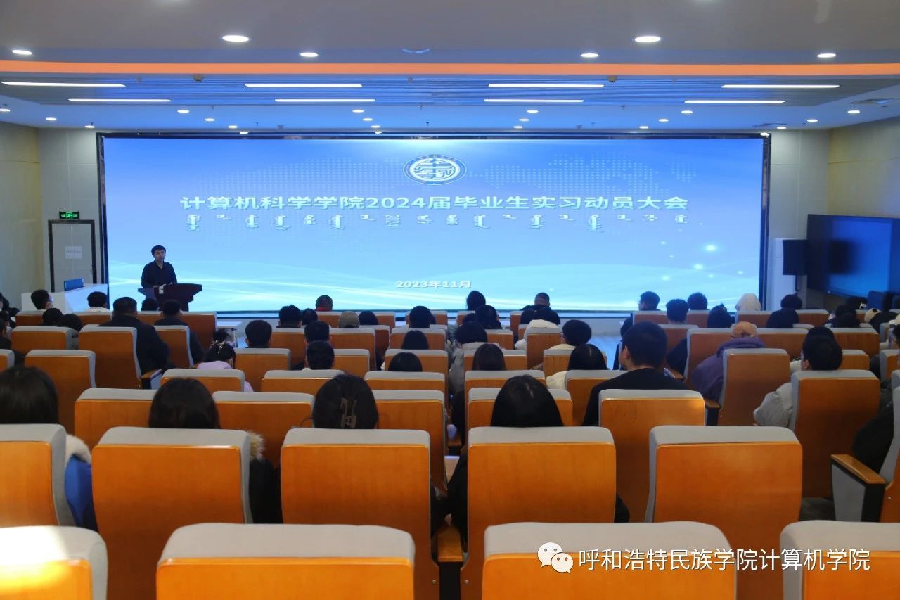 届毕业生实习动员大会。出席本次会议的有计算机科学学院党总支书记雪梅、计算机科学学院副院长(主持工作)包乌格德勒、计算机科学学院党总支副书记色登丹巴、