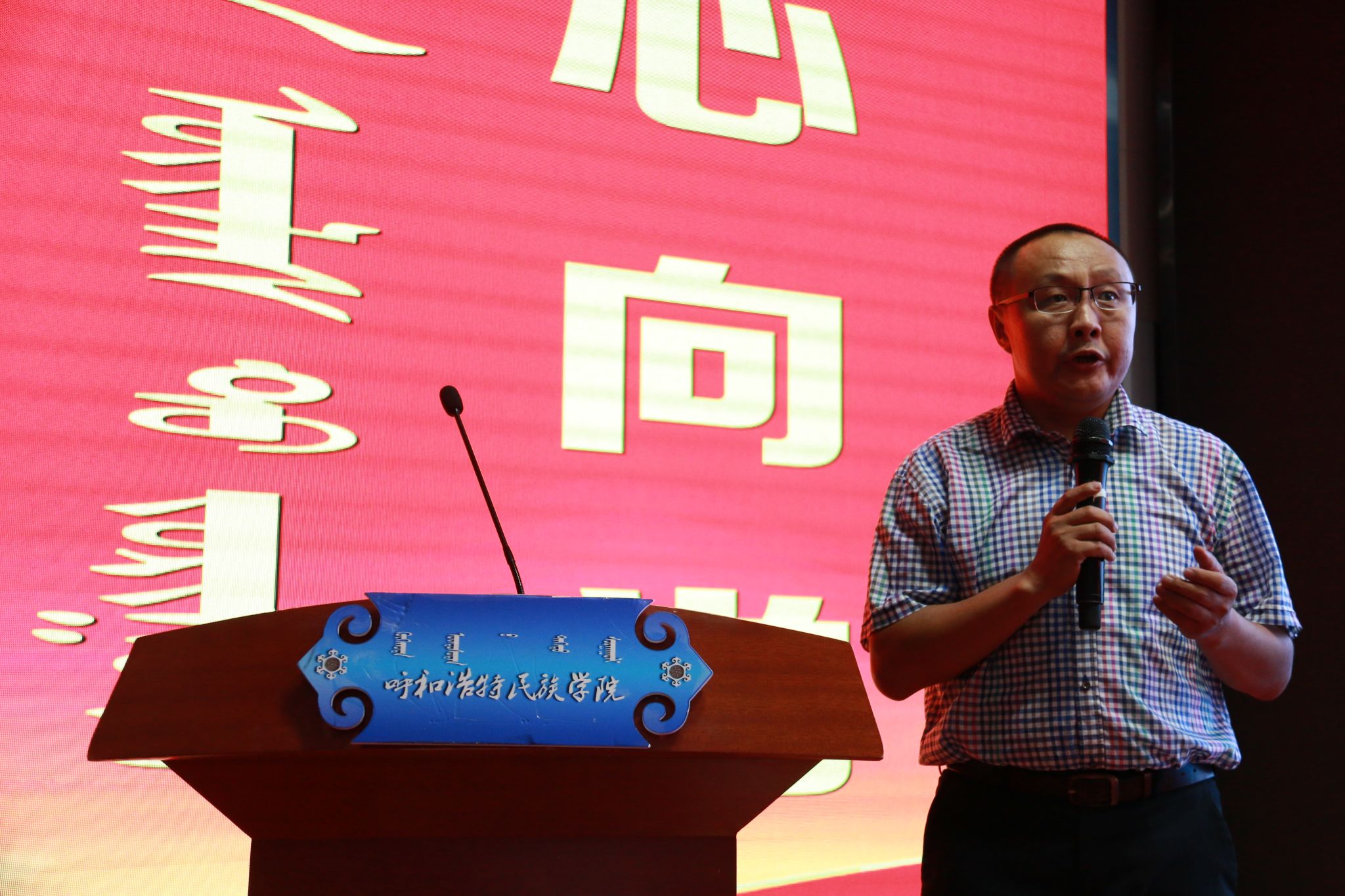 党总支副书记赛希雅拉图为大一新生介绍了我们学校与我们学院的相关情况,并对大一新生的到来表示了热烈的欢迎,表达了自己对大一新生的美好祝愿和殷切期盼,激励大一新生奋发图强,勇于争优。