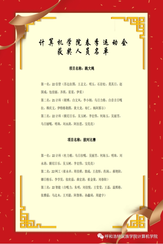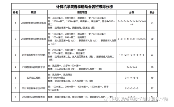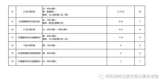 经过紧张、激烈的比拼,2022级信息管理与信息系统班荣获团体总分第一名,2021级信息管理与信息系统班荣获团体总分第二名,2021级计算机科学与技术班荣获团体总分第三名,最终获得本次运动会优秀班集体奖。