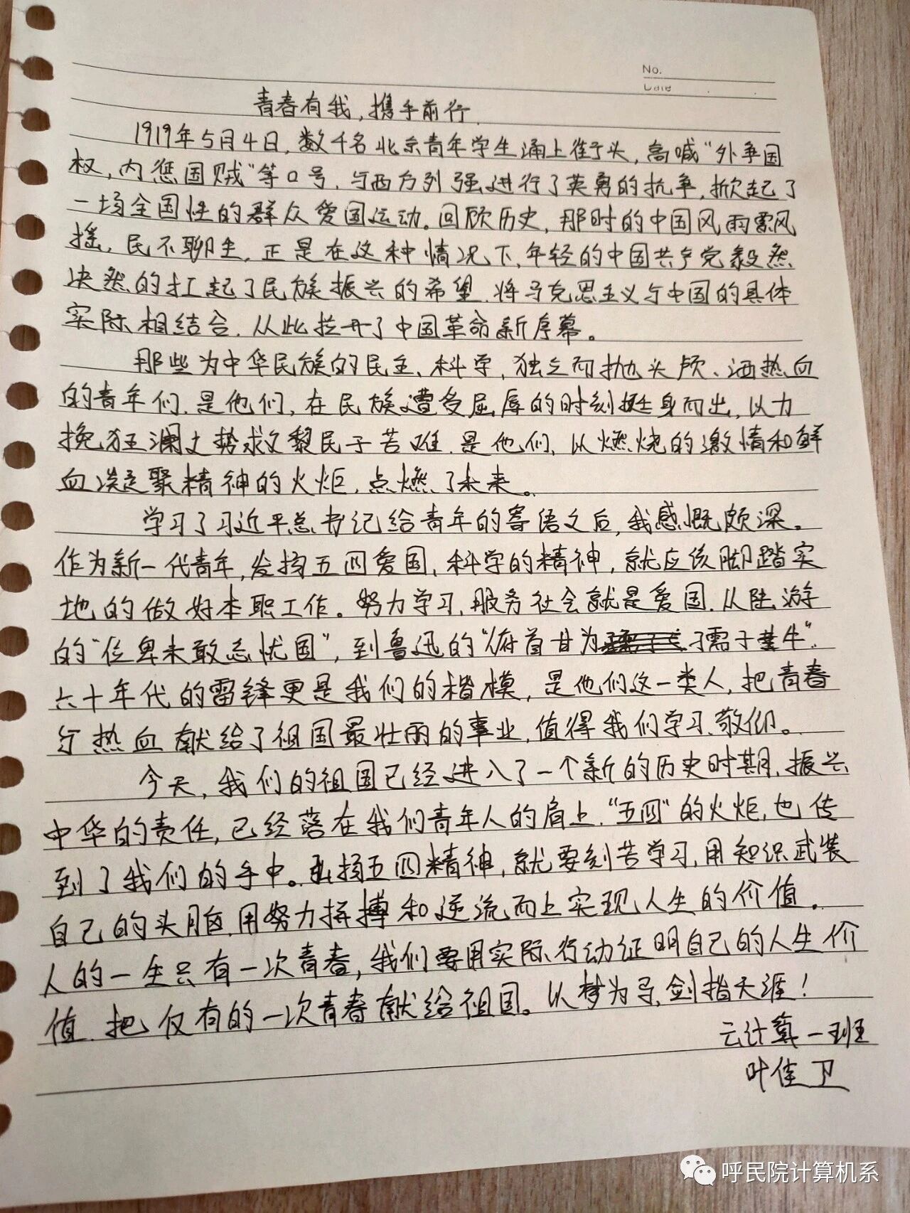 计算机学院各团支部认真领悟“习近平总书记给青年送出的寄语”,并认真写好心得体会。我们在此次学习中深刻体会到,新时代中国青年要继承和发扬五四精神,同亿万人民一起在实现中华民族伟大复兴中国梦的新长征路上奋勇搏击!
