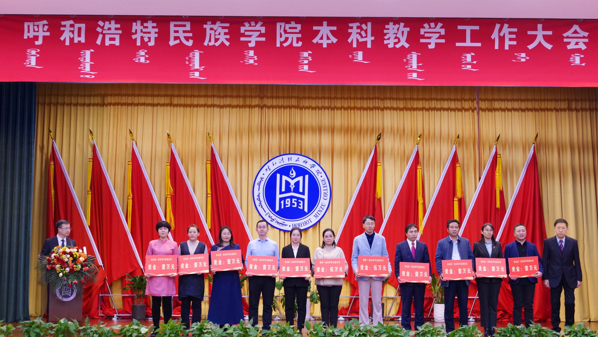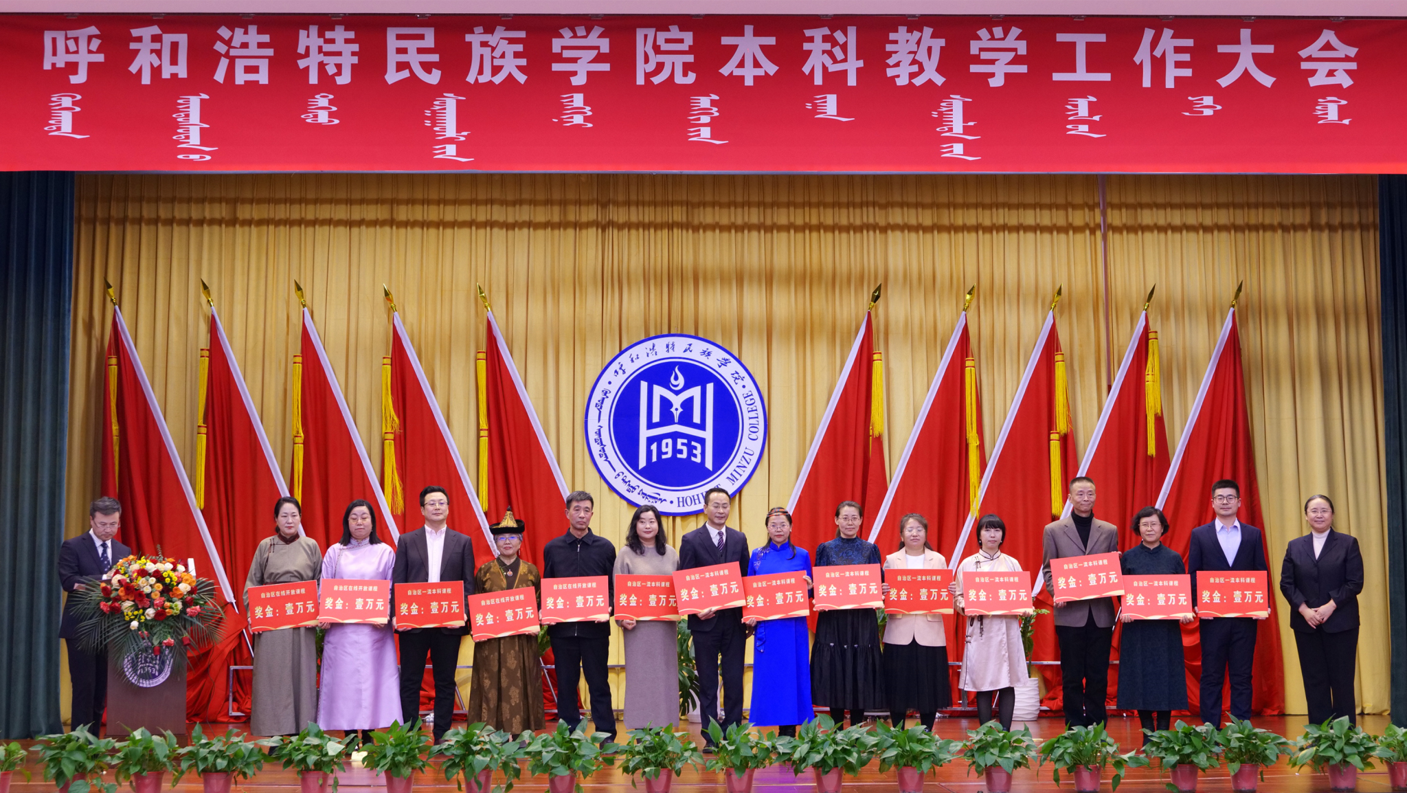 1月15日,学校在学术报告厅召开本科教学工作大会。校党委书记刘九万,党委副书记、校长韩伟新,党委副书记格根哈斯,党委委员、纪委书记王冬梅,党委委员、副校长高喜天,党委委员、副校长刘瑞鸿等全体校领导出席会议。会议由党委委员、副校长额尔敦布和主持。