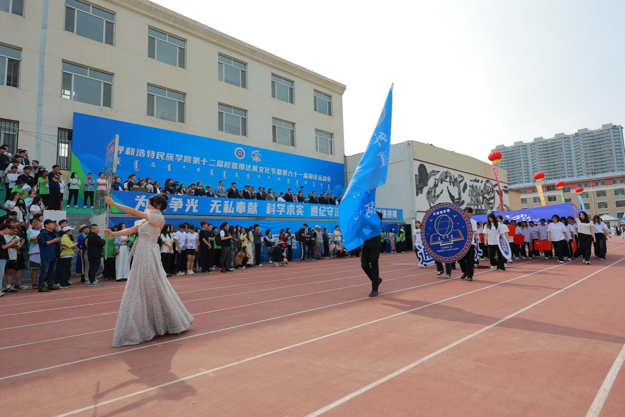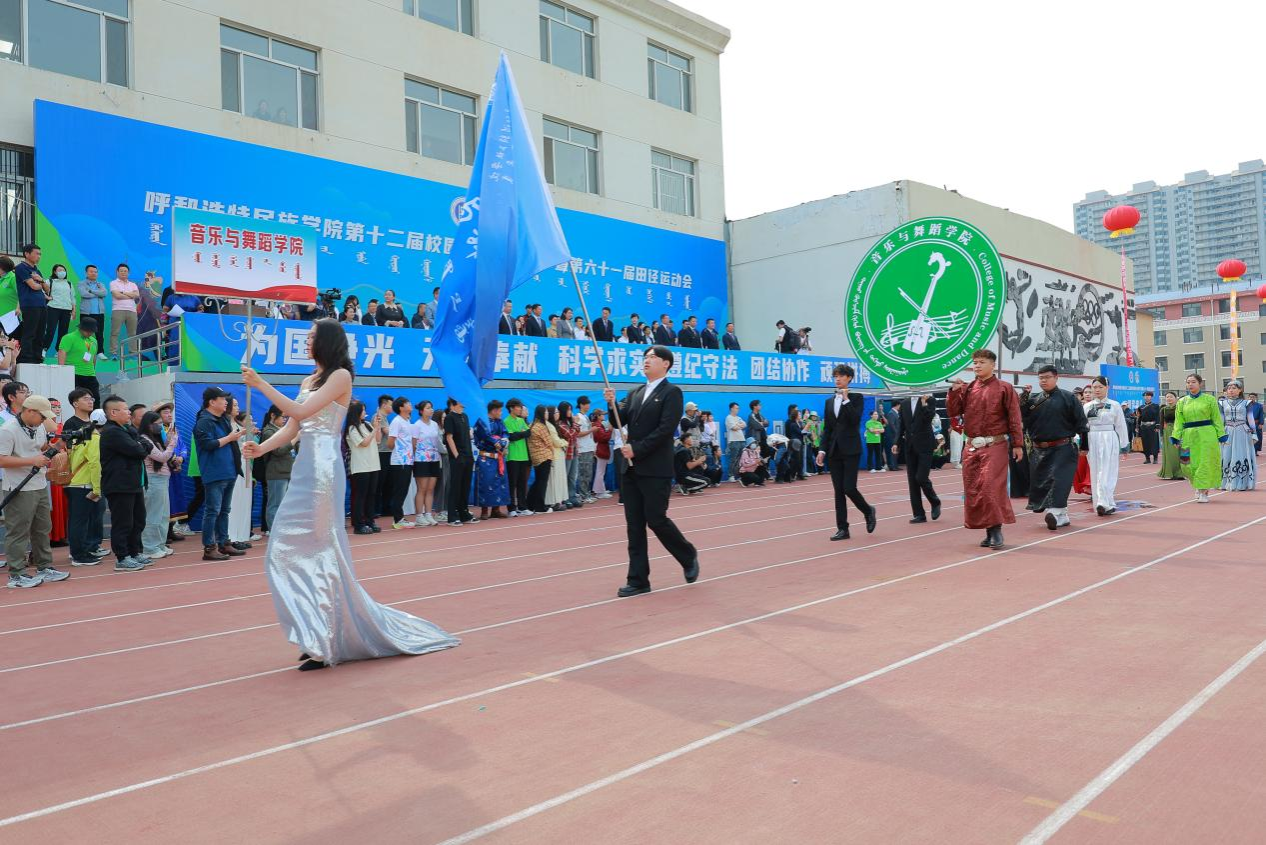 各学院代表队依次入场,师生身着节日盛装,逐一经过主席台接受检阅。大家精神抖擞、英姿勃发,展现了呼民院人朝气蓬勃、锐意进取、积极向上的精神风貌。