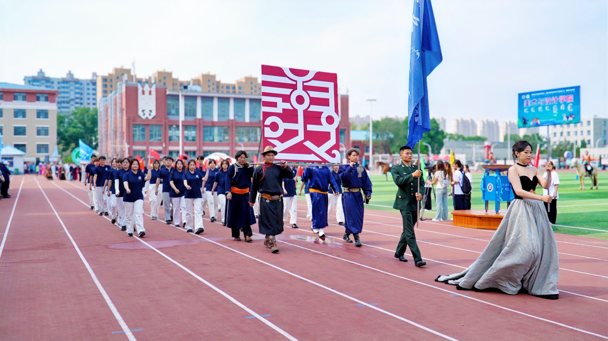校园夏日,绿意昂扬。5月28日上午,学校举办第十二届校园那达慕文化节暨第六十一届田径运动开幕式。校党委书记刘九万,党委副书记、校长王敏,党委副书记格根哈斯,党委委员、纪委书记、监察专员王冬梅,党委委员、副校长高喜天、刘瑞鸿、额尔敦布和、双虎以及各部门、各学院主要负责人出席开幕式。自治区财政厅、天津工业大学、地方语言文字研究应用中心(内蒙古民族团结杂志社)、内蒙古自治区测绘地理信息中心、内蒙古自治区住房资金中心、呼市公交公司、呼市中医蒙医医院的相关领导和嘉宾也莅临活动现场。开幕式由王冬梅主持。71万+人次观看现场图片直播,内蒙古日报、内蒙古新闻网、草原云等多家自治区主流媒体各类平台宣传发布best365此次活动。