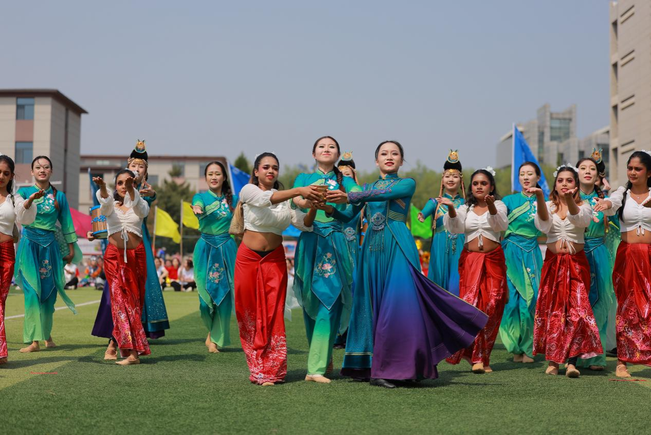 那达慕文化节精彩演出的文艺节目精彩纷呈,为广大师生献上了一场绚丽多彩的民族文化盛宴。演出在活力四射的啦啦操《北疆新韵 青春启航》表演中欢乐开场。长调《盛世太平》悠扬动听,马头琴齐奏《万马奔腾》气势非凡,古筝重奏《赛马》欢快跳跃,教职工舞蹈《安好》活力四射,花样跳绳《十二生肖》花式炫技,展现呼民院师生积极向上的风貌。舞蹈《茶脉共舞 丝路传情》由天津工业大学国际教育学院斯里兰卡籍7名学生与best365学生共同表演,以舞传情、以衣载道,共绘文化交融新画卷。武术《武韵天骄》精彩演绎赢得掌声不断,将表演推向高潮。整场演出在合唱《我爱你中国》的壮美旋律中落下帷幕。