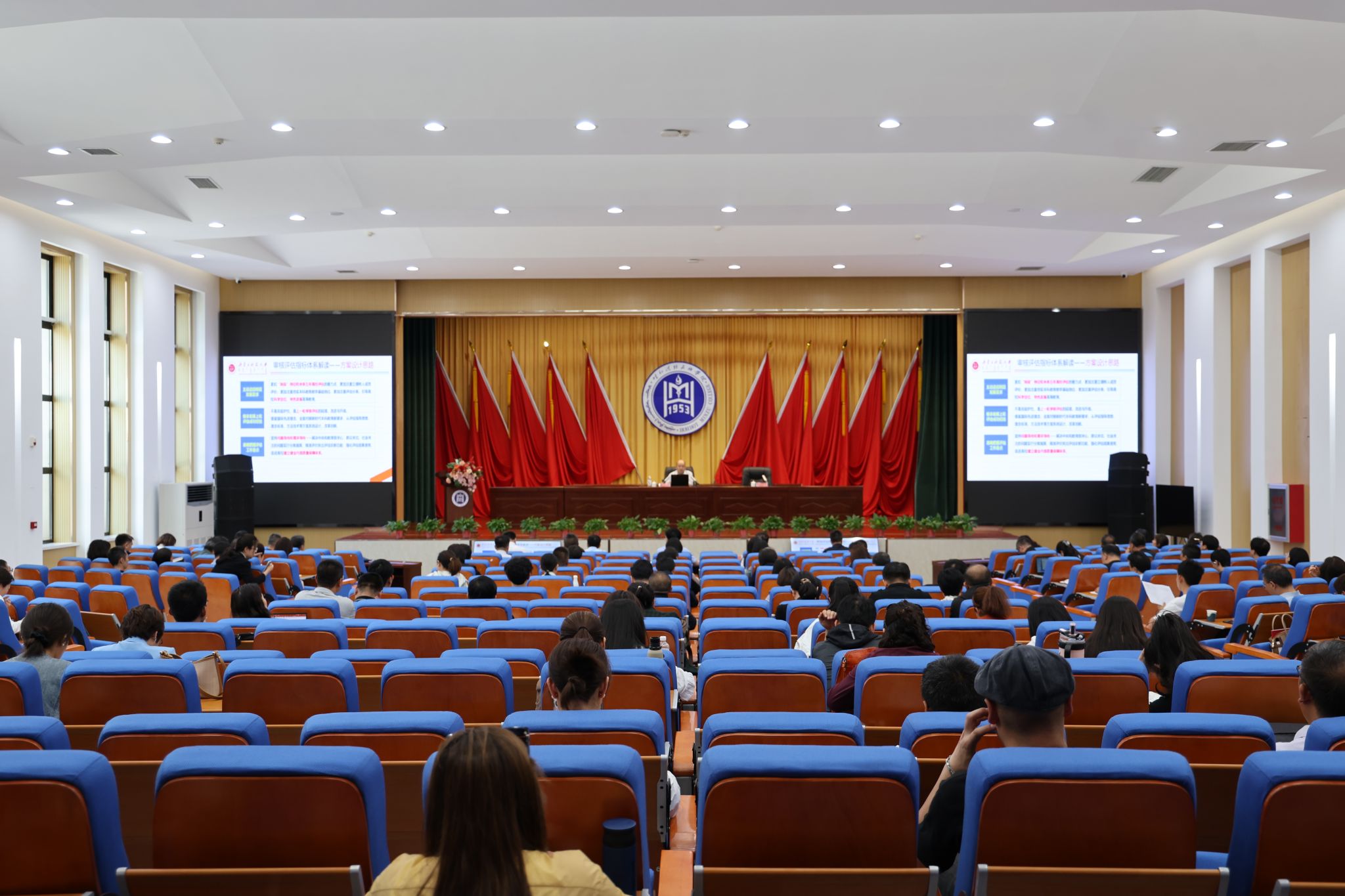 陈明以《新一轮本科教育教学审核评估科大省域试点实践》为题,分“评估——指标解读”“评估——科大认识”“评估——科大行动”三个部分内容,从方案设计思路、核心要求、分类评估方案设计等对新一轮审核评估指标体系进行了深度解析。从“旗帜鲜明讲‘立德树人’”“重构评估‘试点先行’”“破立并举,内涵深化”等三个方面分享了科大对新一轮教育教学审核评估的认识,重点结合科大实际行动详细阐述了审核评估各个环节的工作任务、工作重点、具体做法和注意事项,评估导向、内涵、类型、方法、功能等五大变化,自评自建的重要性、评建过程对学校持续发展的影响和质量文化建设等方面提供了建设性意见。