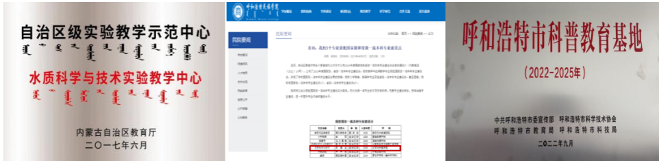 学院现拥有自治区级一流专业建设点1个、自治区级一流课程7门,自治区级实验教学示范中心1个,呼和浩特市科普基地1个。19个专业实验室,配有全自动水质分析仪、离子色谱仪、电感耦合等离子体质谱仪、扫描电子显微镜等大型精密分析仪器,可满足学生和教师实验及科研需求。近年来,学院深入贯彻新工科建设理念,深入开展校企协同育人工作,先后建立了内蒙古蒙草生态环境(集团)股份有限公司等30多个校级协同育人基地。