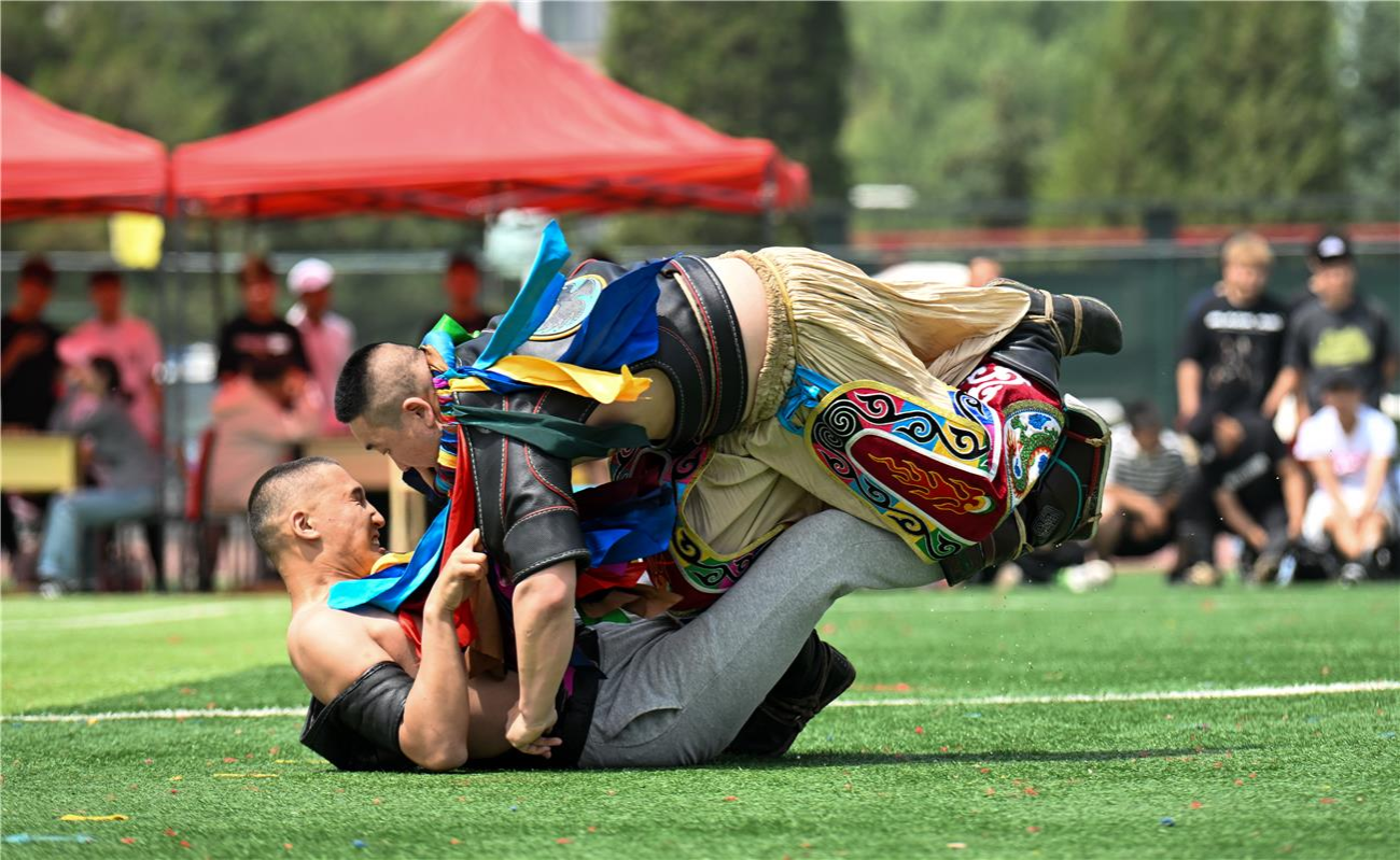学院将国家首批非物质文化遗产“那达慕”作为文化育人核心载体,已连续举办12届“校园那达慕文化节”,获评“内蒙古自治区校园文化精品项目”,并获得过中国教育报专题报道。活动以“竞技+文化+民族团结”为核心,开幕式设火炬传递、民族歌舞表演,竞技环节涵盖博克、布鲁、射箭、蒙古象棋、布鲁、沙嘎等传统项目,同时推动“民族服饰时尚化”,师生身着传统与现代融合设计的蒙古袍参与,既保留原生态文化韵味,又展现多民族交融活力。这一品牌活动不仅成为弘扬蒙古族传统文化的重要平台,更强化了民族团结教育,让民族传统体育在校园焕发时代新活力。