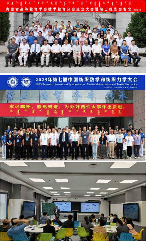 (二)学院坚持守正创新、“教学科研并举,立德与育人并重”理念,建立健全管理机制,充分发挥核心骨干教师引领作用,重视和加强对青年教师教育教学与科研能力培养,加深教学研究和科学研究的融合,通过内培外引、引育结合等方式不断推进和加强师资队伍建设,积极推动学术交流合作,培养和加强团队科研能力水平,开展有组织科研,激发教师学术科研创新意识与热情,有效提升教师学术科研能力,在研究无穷维Hamilton系统及偏微分方程对称和守恒律等领域取得了具有一定影响力的科研成果。先后邀请北京大学张恭庆院士、东北师范大学史宁中教授以及清华大学、北京航空航天大学、哈尔滨工业大学、厦门大学、南京大学、宁波大学、苏州大学、渤海大学以及区内高校的专家学者来校作学术交流报告。举办第八届非线性数学物理国际会议暨全国第十五届孤立子与可积系统学术研讨会、第七届中国纺织数学和纺织力学大会、无穷维Hamilton系统与偏微分方程研究高级培训班等国内国际学术交流会议。通过开展学术交流,促进了与区内外兄弟院系间学术交流与合作,开阔了教师的科研创新思路,提升了教师教育教学及科研素质与能力,进一步增强教师学术研究的发展动力。