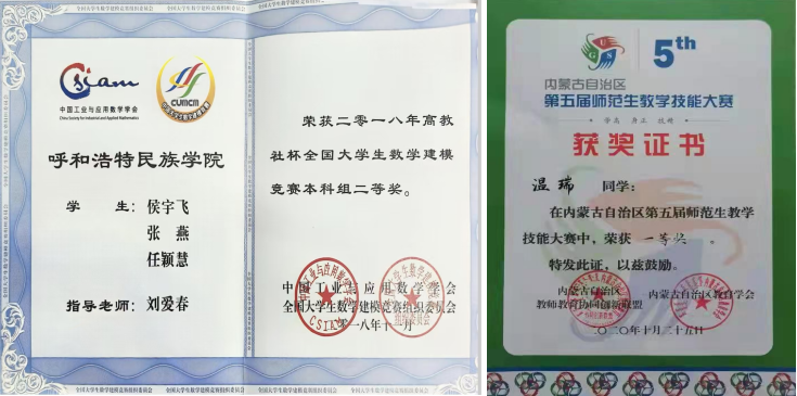 已有35名毕业生考取太原理工大学、内蒙古大学等区内外高校硕士研究生,其中5名学生考取博士研究生。指导学生在参加学科竞赛,在高教社杯全国大学生数学建模竞赛、自治区师范生课堂教学技能大赛等大赛中,累计获得一、二等奖等各类奖项100多人次。