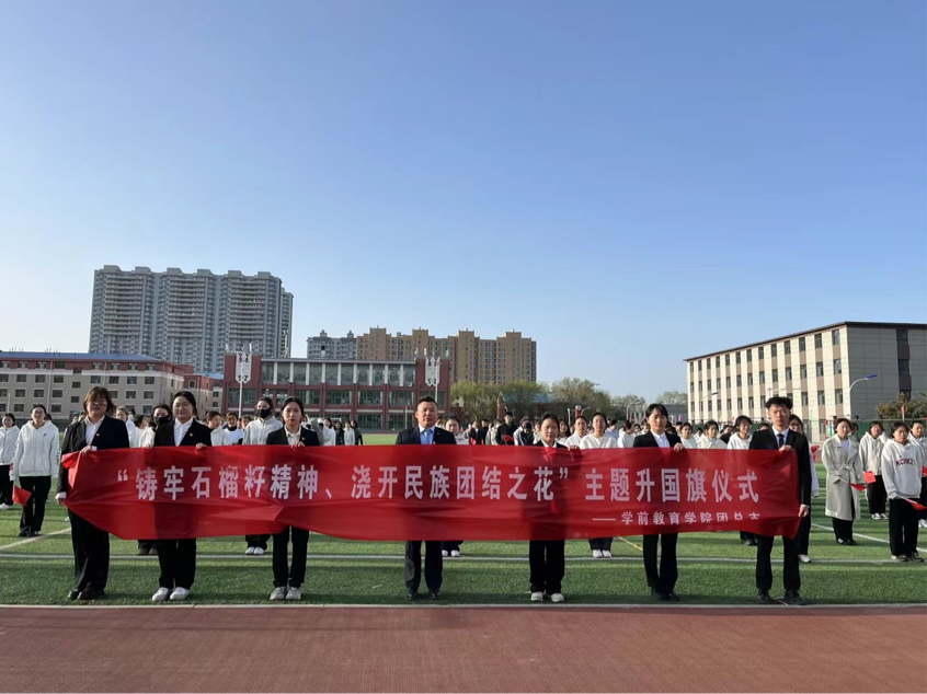 为深入学习贯彻习近平总书记关于加强和改进民族工作的重要思想,深化铸牢中华民族共同体意识,4月15日清晨,学前教育学院团总支于南操场开展“铸牢石榴籽精神、浇开民族团结之花”主题升国旗仪式。团总支书记斯日古冷、全体在校学生参加活动,学生会主席王馨悦主持仪式。