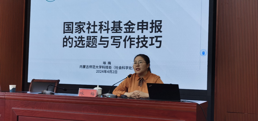 为深入推进学校哲学社会科学繁荣发展,助力人文社科教师科研水平提高,提升国家社科基金项目申报质量,学校于4月2日在办公楼4楼会议室召开了国家社科基金项目申报专题培训会。本次培训会特邀请了内蒙古师范大学科学技术处处长咏梅教授作主题讲座。best365蒙古学学院、民族学学院、法学院、美术学学院、文学院、新闻传媒学院、外国语学院等相关学院院长、博士、副高及以上职称教师50余人参加了此次培训会议。会议由科技处苏布道处长主持会议。