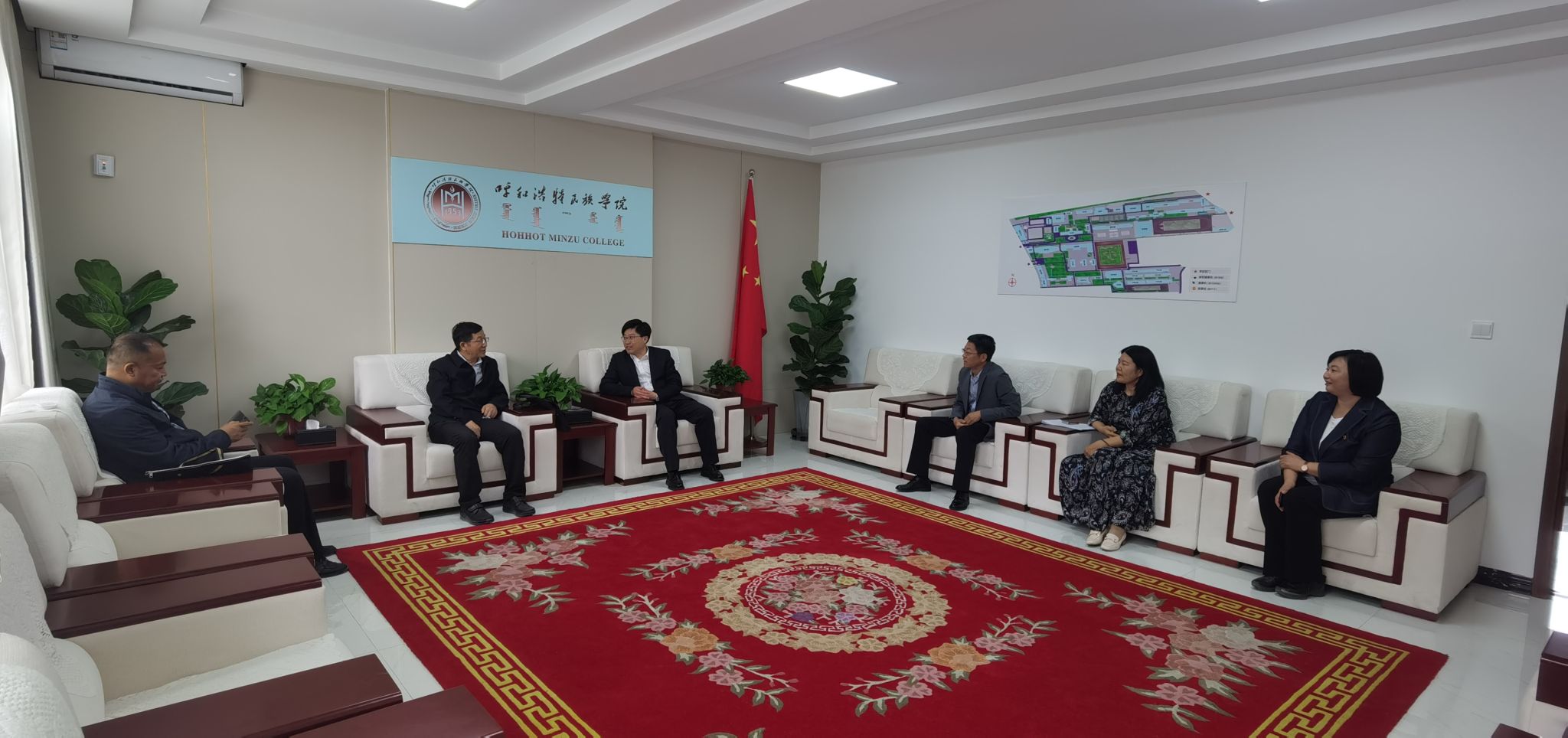 5月14日下午,内蒙古北宸智库研究中心理事长蔡常青、监事长马益波一行来best365考察调研,校党委副书记、校长韩伟新会见调研组一行。韩伟新简要介绍了学校发展历程、特色专业设置等情况,重点介绍了在学校近些年在教学科研方面取得的成绩和下一步工作思路,希望与中心加强沟通合作,推动学校科研工作站取得新进展。校党委委员、副校长高喜天出席座谈。
