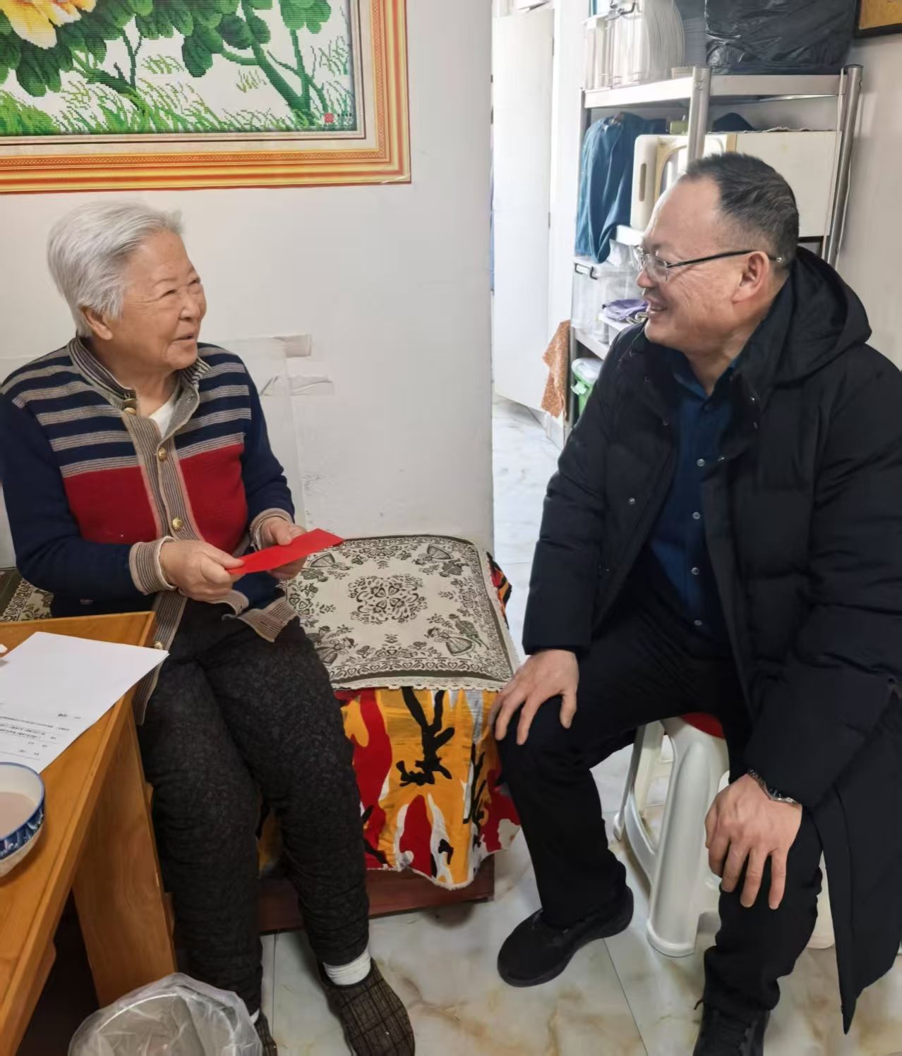 楚处长与老同志亲切交谈,详细询问身体状况和生活情况,耐心倾听意见建议,叮嘱老人家保重身体,并传达学校的关心和关怀。