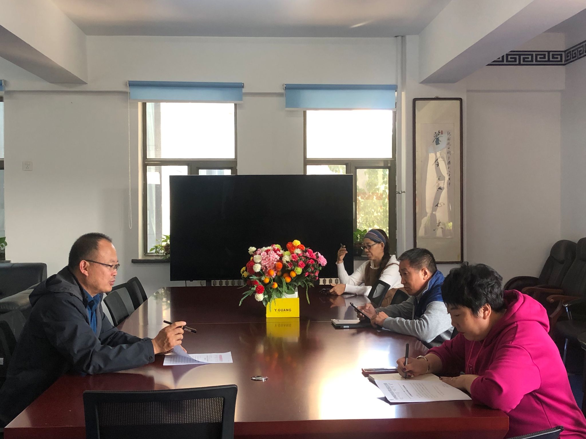 楚长利处长向离退休人员工作处全体人员传达学校文件