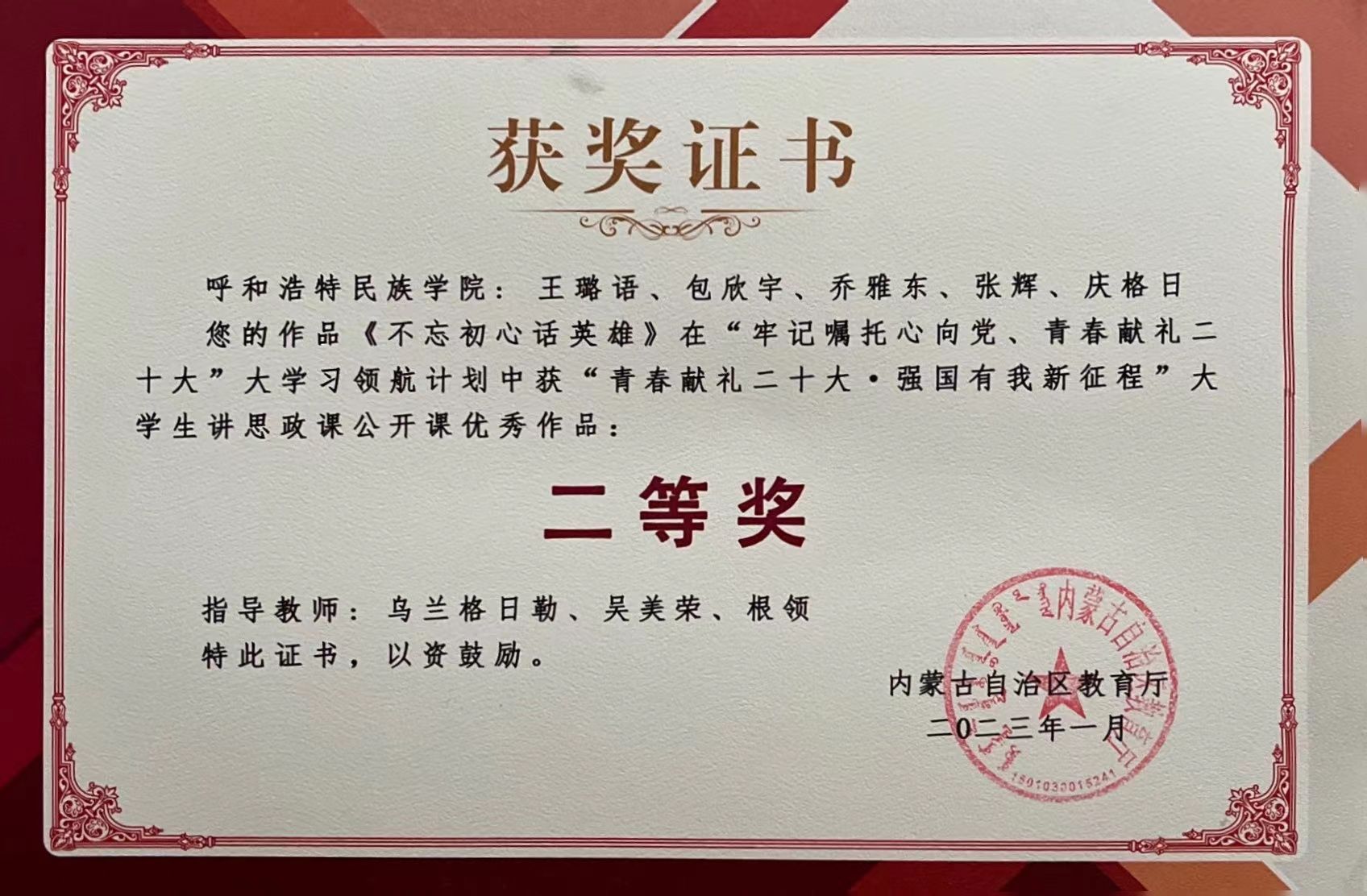 我院学生获得2022年度自治区大学生讲思政课优秀作品二等奖