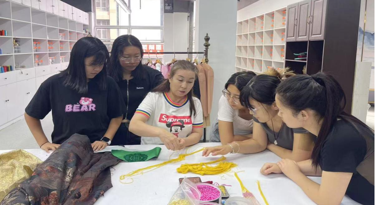2021级产品设计专业学生在导师萨仁图雅的带领下前往鄂托克前旗职业中学,参与2024年鄂尔多斯市“铸牢中华民族共同体意识”农牧民实用技术培训活动,为当地农牧民带去知识服务、设计理念和技能的同时,也认识到艺术设计在基层经济发展与民族团结进步中的重要作用。同学们通过体验传统工艺的制作流程,将现代设计元素巧妙融入其中,以新的视角和“设计+手工”的实践方式,动手制作了蒙古族头饰、皮雕作品、陶艺作品等极具民族特色的艺术品,与当地文化产生深度互动,加深了解、感受传统文化艺术丰富内涵的同时,增强了传承,弘扬传统文化艺术的责任感和使命感。