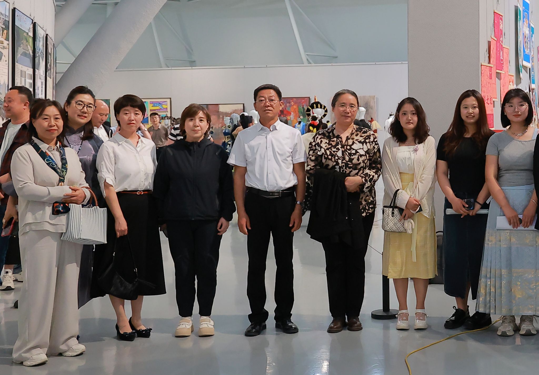 党政办公室、教务处、工会等相关单位负责人陪同参观,美术与设计学院领导班子和师生代表参加观展活动。