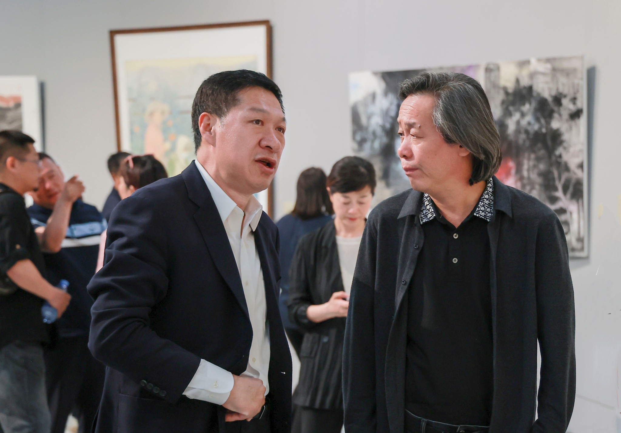 在展览现场,大家一边驻足欣赏每一件精心创作的美术作品,一边与师生亲切交流,探讨创作理念、艺术表达手法以及教学实践中的创新思路。