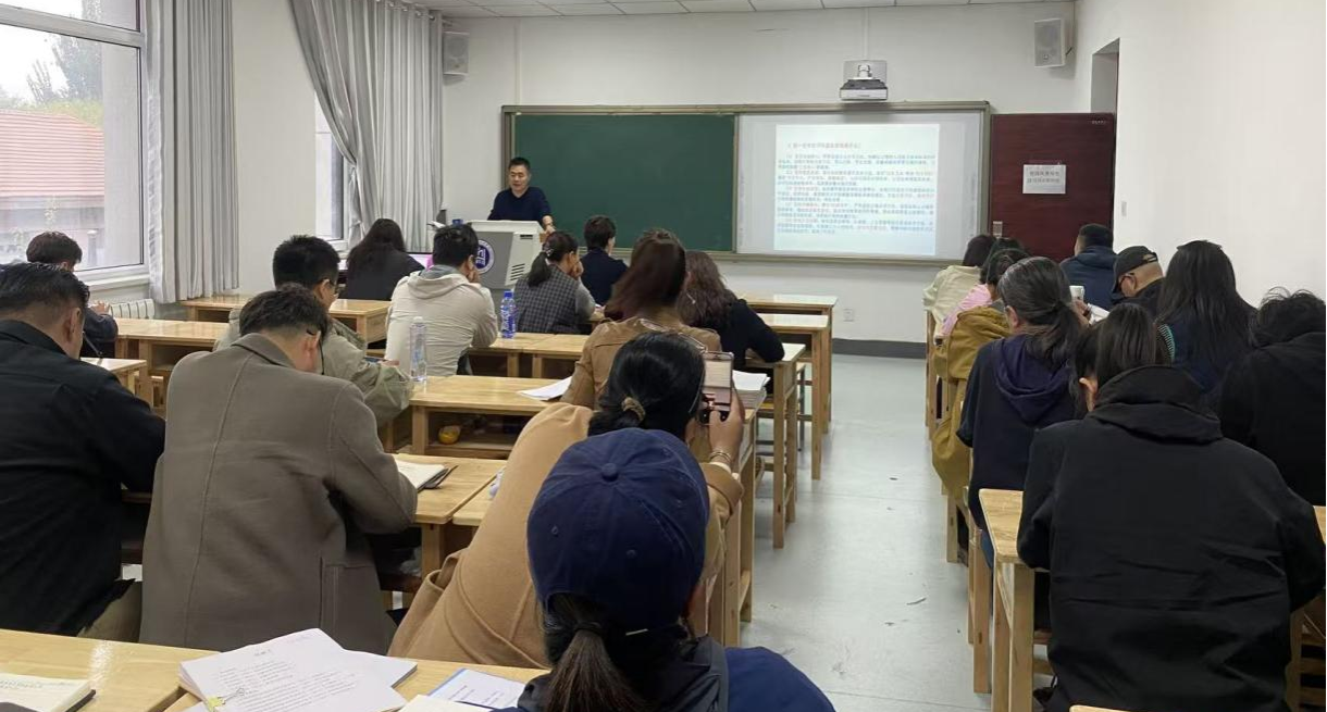 随后,高特木乐院长依据学校本科教育教学审核评估教师访谈座谈培训内容,围绕本科教育教学审核评估的重要性、评估核心、流程安排以及评估形式等,向全体教师进行培训。并就进一步严抓课堂常规管理、提升教学质量,引导学生重视评估意义、规范学生课堂行为,若遇专家听课、看课、查课等情况,保持平常心,如实反馈学习体验与需求,共同营造良好的评估环境等进行提醒。