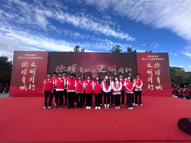 9月20日下午,由中共呼和浩特市委宣传部、呼和浩特市精神文明建设办公室主办的“德耀青城 文明同行”呼和浩特市第22个公民道德宣传日主题活动在玉泉区大召广场成功举办。我院“红石榴”志愿服务队受邀参加活动。
