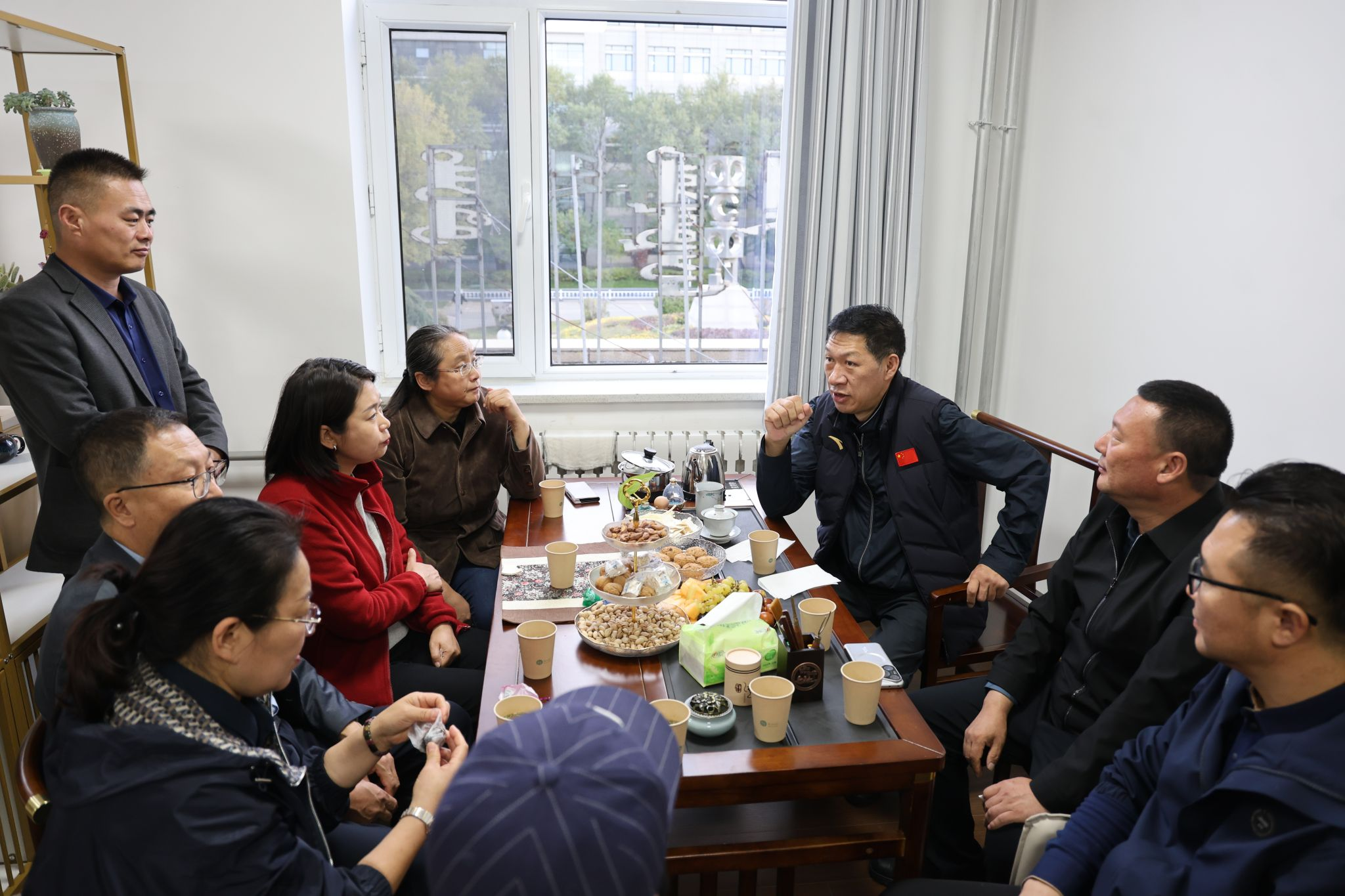 10月12日下午,校党委书记刘九万,党委副书记格根哈斯,党委委员、纪委书记,监察专员王冬梅,党委委员、副校长刘瑞鸿一行到美术与设计学院调研指导工作,并在“职工小家”进行座谈交流。